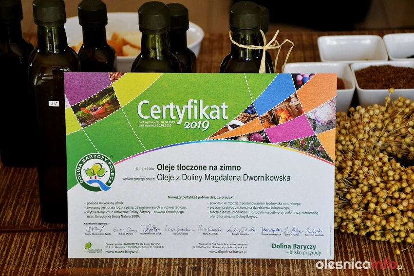 Dzisiaj pani Magdalena jest jednym z producentów działających pod prestiżowym znakiem Doliny Baryczy. W swojej niewielkiej olejarni produkuje oleje tłoczone na zimno. Głównie na zamówienie klienta. Dba o ich jakość, dlatego oleje powstają tylko z certyfikowanych ziaren, które są badane, odpowiednio czyszczone i suszone. Do każdej partii wystawiany jest atest jakościowy oraz potwierdzający brak GMO. Oleje z Doliny są tłoczone często, dlatego są zawsze świeże, nie są poddawane filtracji a jedynie samoczynnej sedymantacji. Tłoczony w niskiej temperaturze olej trafia do butelek, a potem do lodówki. Tam czeka na klientów.