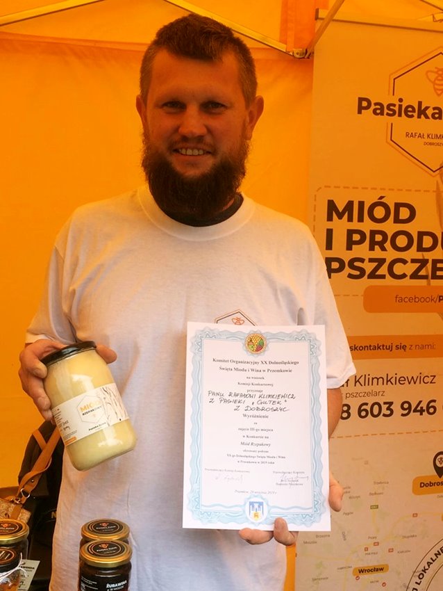 Podczas tegorocznej edycji Dolnośląskiego Święta Miodu i Wina w Przemkowie miód rzepakowy z Pasieki Gutek zdobył trzecią nagrodę. Gratulujemy!