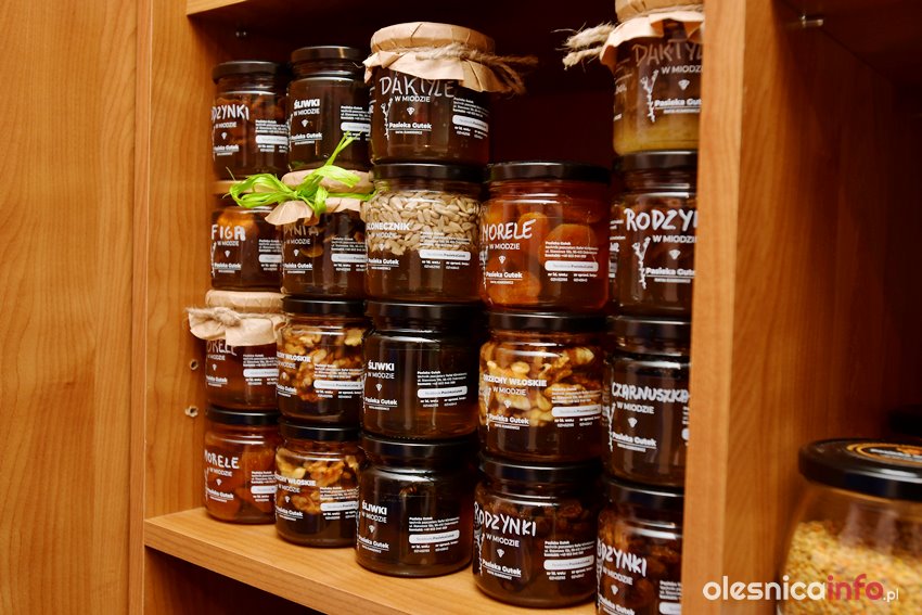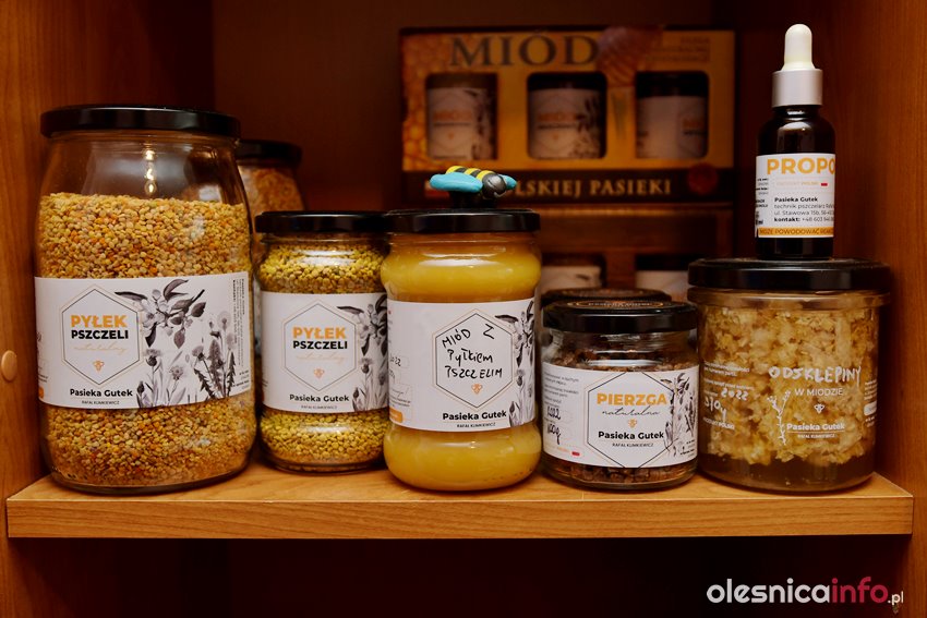 Miód zajmuje w ich domu wyjątkowe miejsce. I w przenośni, i dosłownie, bo przy Pasiece działa niewielki, ale znakomicie wyposażony sklepik. Kupimy w nim pięknie opakowane miody (w różnej wielkości słojach i w kilku rodzajach), kupimy świece z pszczelego wosku oraz to, co niedawno stało się prawdziwym przebojem, czyli zatopione w miodzie orzechy, śliwki, imbir, a nawet płatki róż. – Zaczęło się od zapasów orzechów włoskich w naszym domu – śmieje się pani Katarzyna. – Zastanawialiśmy się, co z nimi zrobić i tak zrodził się pomysł zatopienia orzechów w miodzie. Okazało się, że klienci byli zachwyceni, więc poszliśmy za ciosem i przygotowaliśmy kolejne propozycje. Wszystkie spotkały się z ciepłym przyjęciem, bo okazało się, że to nie tylko smakołyk do domowej spiżarni, ale bardzo ciekawy pomysł na prezent.