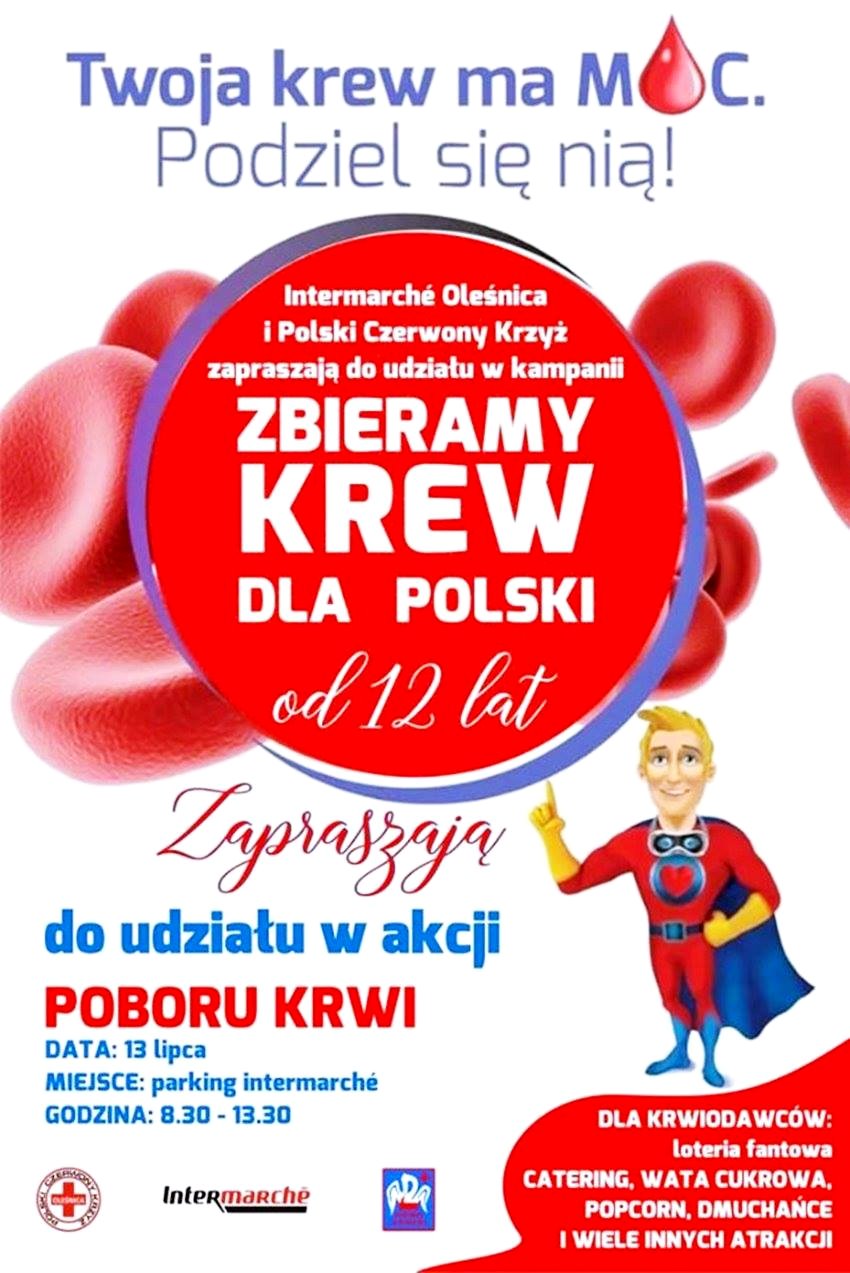 Krew będzie można oddawać w autobusie Regionalnego Centrum Krwiodawstwa i Krwiolecznictwa, który stanie przy Intermarche w Oleśnicy oraz w holu Szkoły Podstawowej nr 6. Organizatorzy zapowiadają także szereg atrakcji dla osób, które pojawią przy oleśnickim markecie.