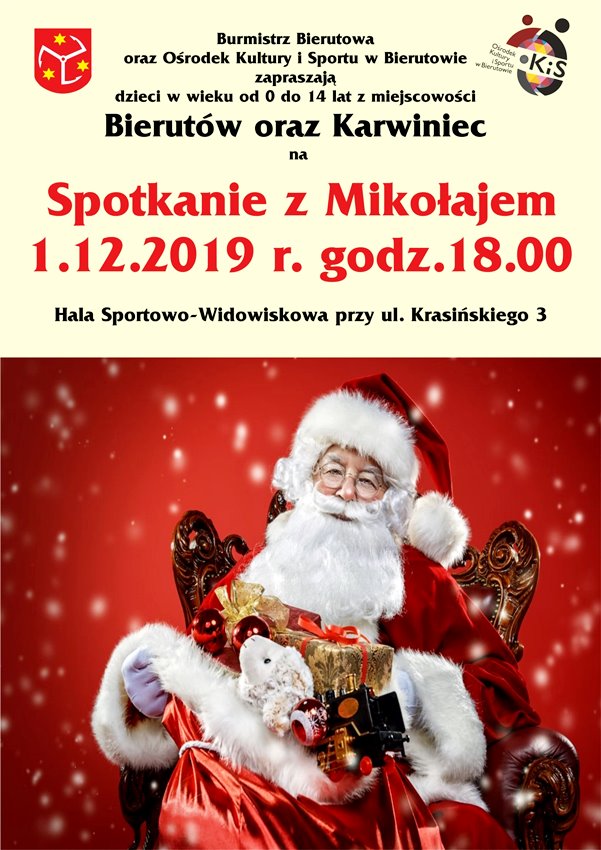 – Coroczne spotkanie ze świętym Mikołajem dla młodszych mieszkańców Bierutowa i Karwińca odbędzie się zaraz po warsztatach bożonarodzeniowych i kiermaszu czyli w niedzielę 1 grudnia o godz. 18 w Hali Sportowo-Widowiskowej przy ul. Krasińskiego 3 – informuje OKiS.