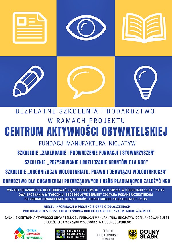 Fundacja Manufaktura Inicjatyw z Wrocławia zakończyła w Oleśnicy pierwszy etap działań w ramach projektu Centrum Aktywności Obywatelskiej.