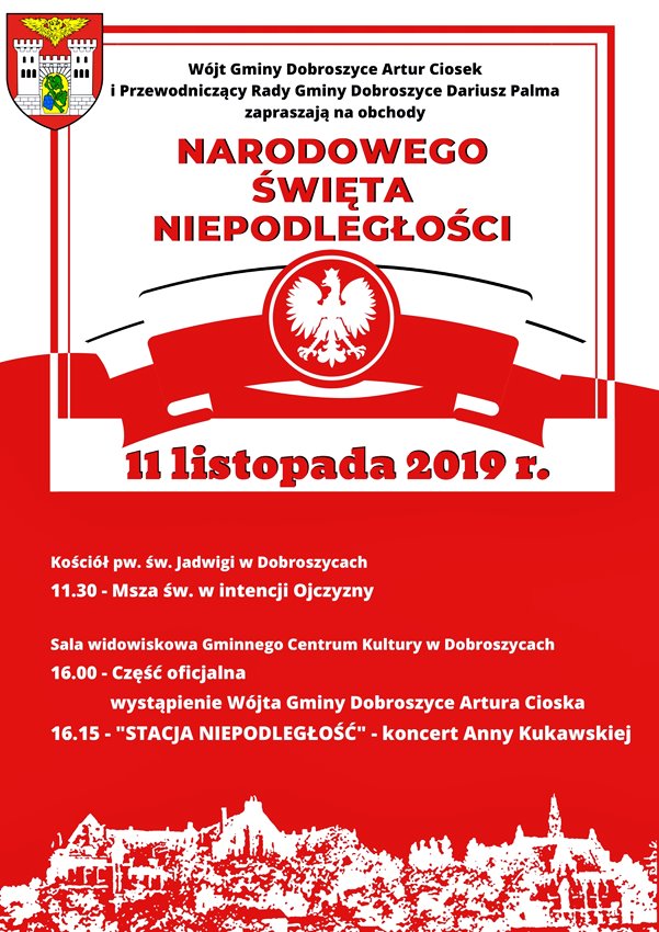 Gmina Dobroszyce włączy się do obchodów 101. rocznicy odzyskania przez Polskę niepodległości.