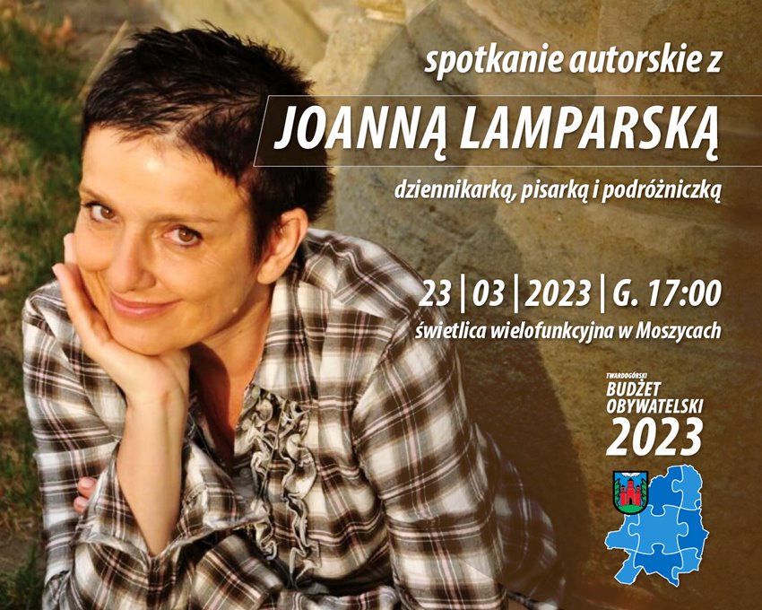 Gmina Twardogóra zaprasza na spotkanie z Joanną Lamparską – pisarką, dziennikarką i podróżniczką. Spotkanie odbędzie się 23 marca (czwartek) o godz. 17 w świetlicy wielofunkcyjnej w Moszycach.