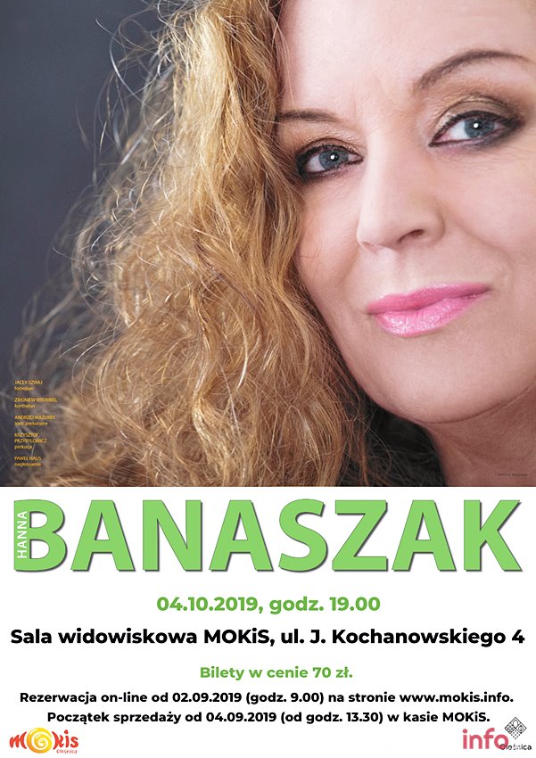 Miejski Ośrodek Kultury i Sztuki w Oleśnicy zaprasza 4 października o godzinie 19.00 do sali widowiskowej na koncert Hanny Banaszak.