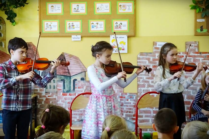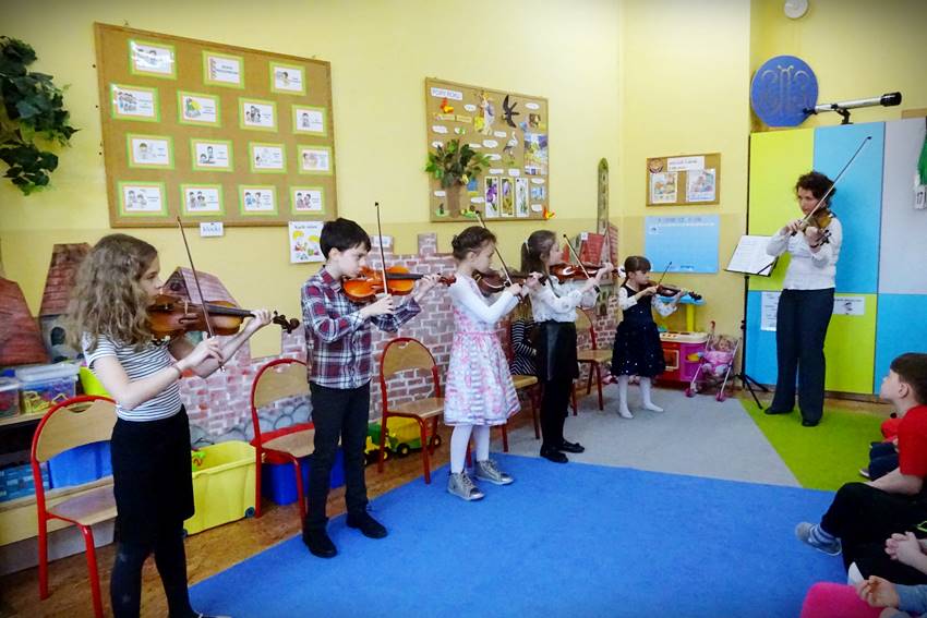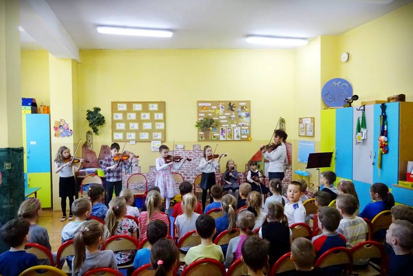 Uczniowie Szkoły Suzuki Muzyczny Zakątek koncertowała w Przedszkolu nr 6 i w Szkole Podstawowej nr 2. Przedszkolaki i uczniowie wysłuchali opowieści o skrzypcach, wspólnie z nami śpiewali i na niby „grali”. Może któreś z nich kiedyś również z nami zagra, ale już jako prawdziwy skrzypek.