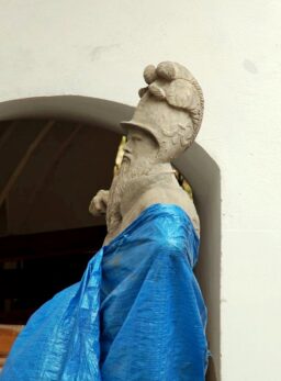 – Pan Piechówka poruszył problem rzeźby całopostaciowej Karola II Podiebrada z przedbramia zamkowego. W książkach, przewodnikach, na stronach piszą, że jest to rzeźba Jana Podiebrada. Inskrypcja zamieszczona nad rzeźbą mówi „ Jan książę ziębicko-oleśnicki, hrabia kłodzki, baron Kunstatu i Podiebradów dał początek budowie w 1559 i prace te w roku 1562 szczęśliwie ukończył ” – pisze oleśniczanin Wiesław Mazurkiewicz. – Podobno konserwator zabytków, po remoncie nie zgodził się na umieszczenie rzeźby na swoim miejscu, ze względu na wartość historyczną. Domyślam się że przeniesienie posągu na piętra zamku, może okazać się kosztowne i problemowe. Postanowiono przenieść Jana do portierni ?! Nie ma wystarczających pieniędzy na wykonanie kopii, oczyszczenie zatynkowanej przez nas po wojnie tablicy, inskrypcji nad posągiem. Brakuje pieniędzy na ratowanie „Tarczownika” i innych zabytków w zamku. Coroczna stała kwota przekazana z budżetu miasta jest za mała. Dawniej pisałem o pomocy w wspieraniu remontu zamku w formie „wędki”, czyli zleceń.