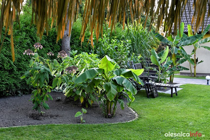 Na terenie, gdzie dzisiaj rosną między innymi palmy i bananowce, kiedyś był warzywniak. – Potrzeba było sporo pracy i zaangażowania, żeby zmienić pole w ogród – mówi pan Tomasz. – Posiałem trawę i zacząłem szukać roślin nietypowych, a że zawsze bardzo podobały mi się palmy, postawiłem właśnie na nie. Moja przygoda z egzotycznym ogrodem trwa już kilka lat i choć pielęgnacja takich roślin wymaga ciągłego pogłębiania wiedzy i bardzo dużo codziennej pracy, uważam, że warto.
