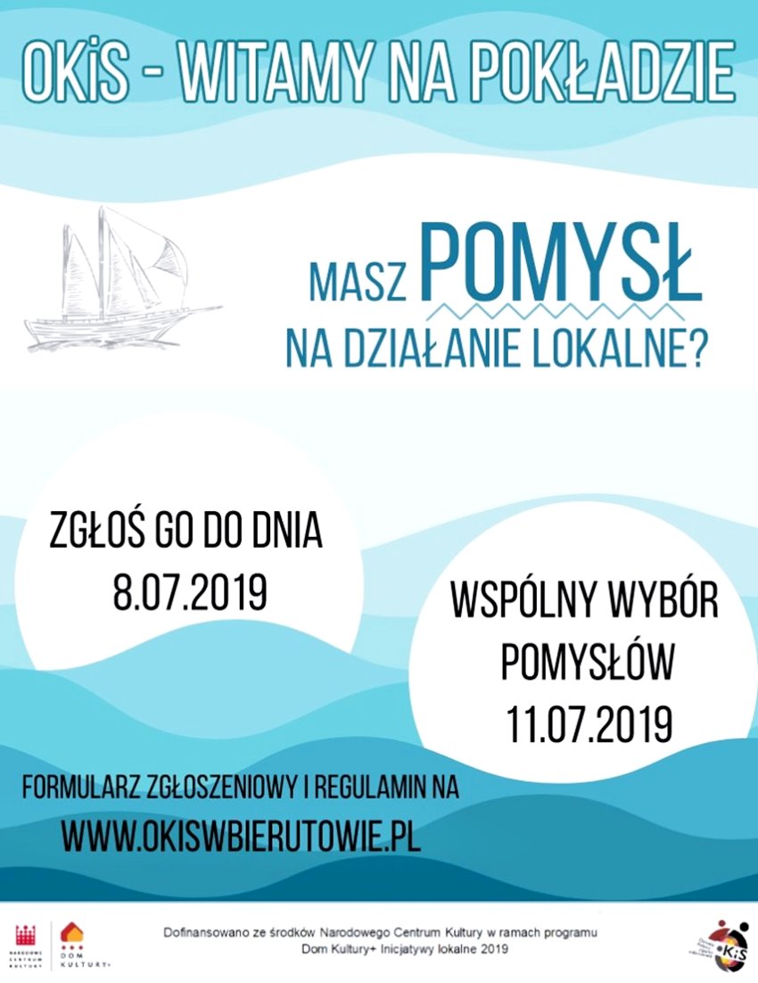 – Jeśli wpadacie na takie lub inne pomysły na kulturalne działanie w swojej okolicy i wiecie jak je zrealizować ale potrzebujecie wsparcia, to zapraszamy do wzięcia udziału i zgłoszenia takiego pomysłu w ramach projektu OKiS – witamy na pokładzie – informuje ośrodek. – Jest to niepowtarzalna okazja do tego, by przedstawić swój pomysł na lokalne działanie kulturalne i przekonać innych, że to właśnie Wasza inicjatywa najsilniej pobudzi społeczną aktywność kulturalną.