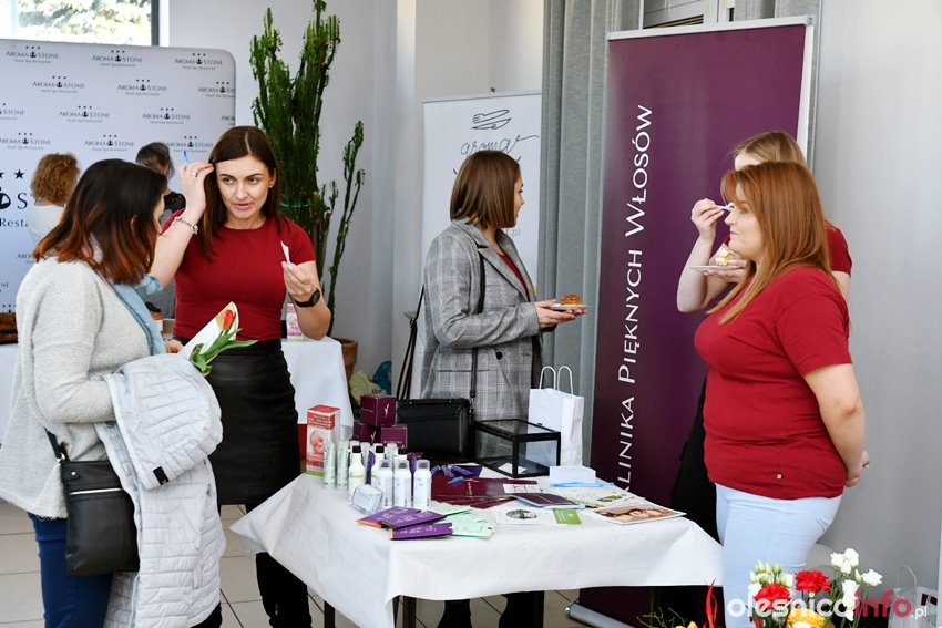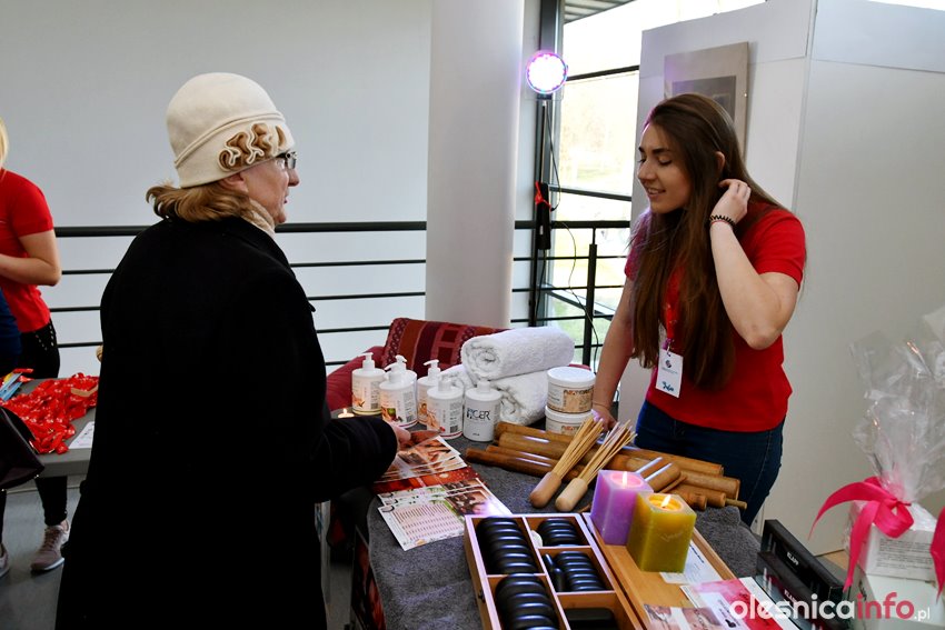 Na oleśniczanki czeka kawiarenka ze słodkościami. Można skorzystać z porad kosmetycznych i fryzjerskich, zrobić odzieżowe zakupy i skorzystać z porad specjalistów od fitness i zdrowego sposobu życia. Odbywają się także warsztaty makijażu (z makijażystką Eweliną Katą), z psycholog Mirellą Batog „Poszła para w gwizdek – o sztuce wyrażania emocji” oraz z trenerką Kingą Handzlik. Sztuką powstawania gałganków dzieli się z chętnymi Agata Miszewska, a o zbawiennym wpływie pijawek na zdrowie i urodę opowiada Ewa Kubik. Wszystkim paniom kwiaty wręczają szefowie rad powiatu w mieście i powiecie Aleksander Chrzanowski i Adam Horbacz.
