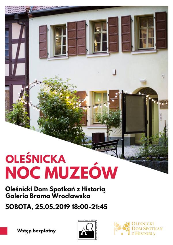 W sobotę 25 maja Oleśnicki Dom Spotkań z Historią oraz Galerię Brama Wrocławska zwiedzić można bezpłatnie w godzinach 18:00-21:45. W tym samym czasie na terenie miasta odbywać się będzie Oleśnicka Nocna Gra Miejska „Retro(in)spekcja” (na wydarzenie obowiązywały wcześniejsze zapisy!).