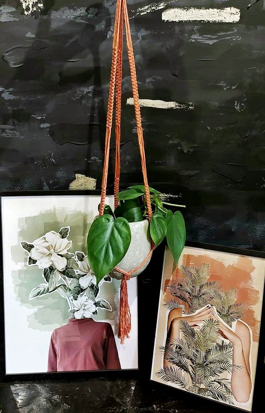 - kwietnik makramowy – ręcznie wykonane kwietniki, dla wszystkich, którym brakuje już miejsca na parapetach