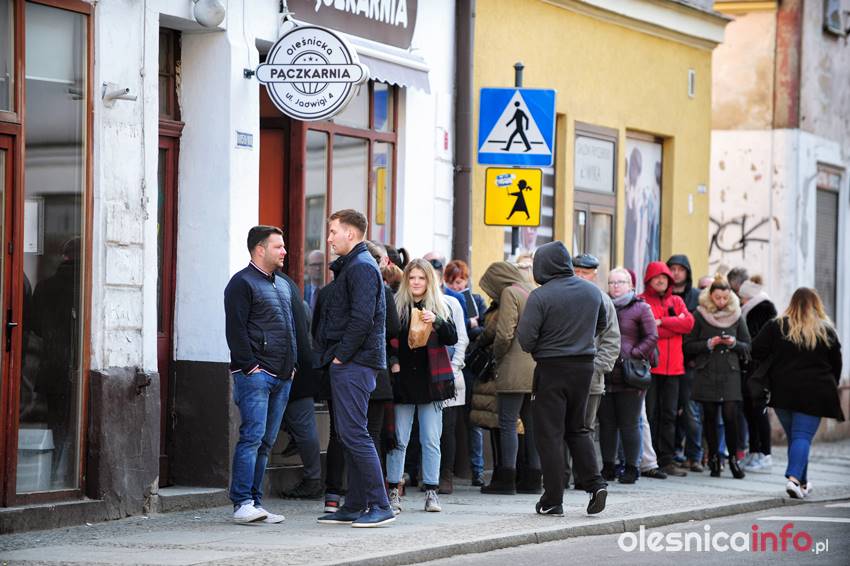Takie tłumy stoją od rana pod obiema oleśnickimi pączkarniami, przy ul. 3 Maja i św. Jadwigi.