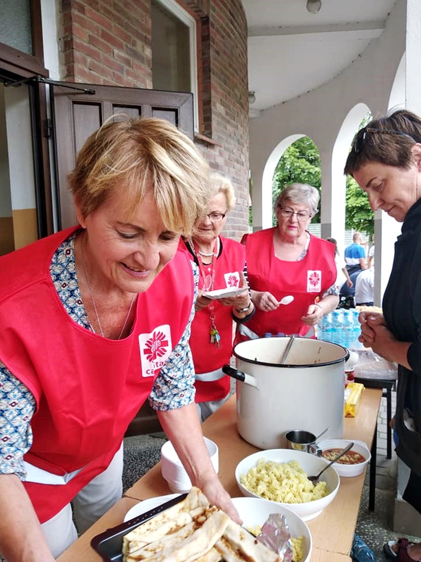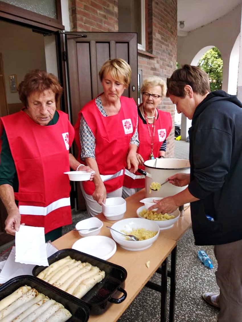 36. Piesza Zielonogórska Pielgrzymka Duszpasterska Rolników gościła w parafii NMP Matki Miłosierdzia w Oleśnicy. Członkowie Parafialnego Zespołu Caritas przyjęli pątników. Była zupa, pyszne naleśniki, ciasto, napoje, ale przede wszystkim – jak mówią – radość ze spotkania.