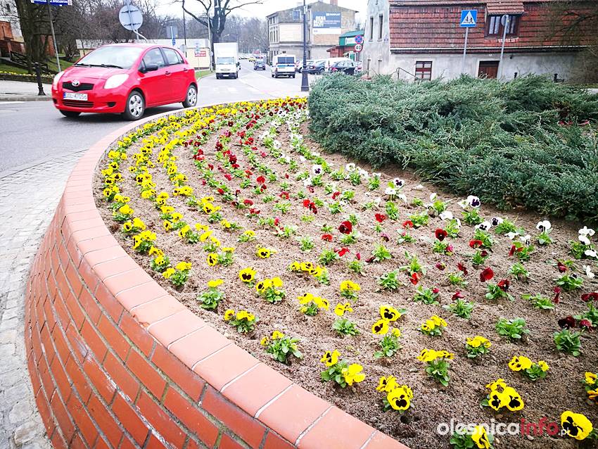 Na oleśnickich rondach i rabatach pojawia się pierwsza szata kwiatów.