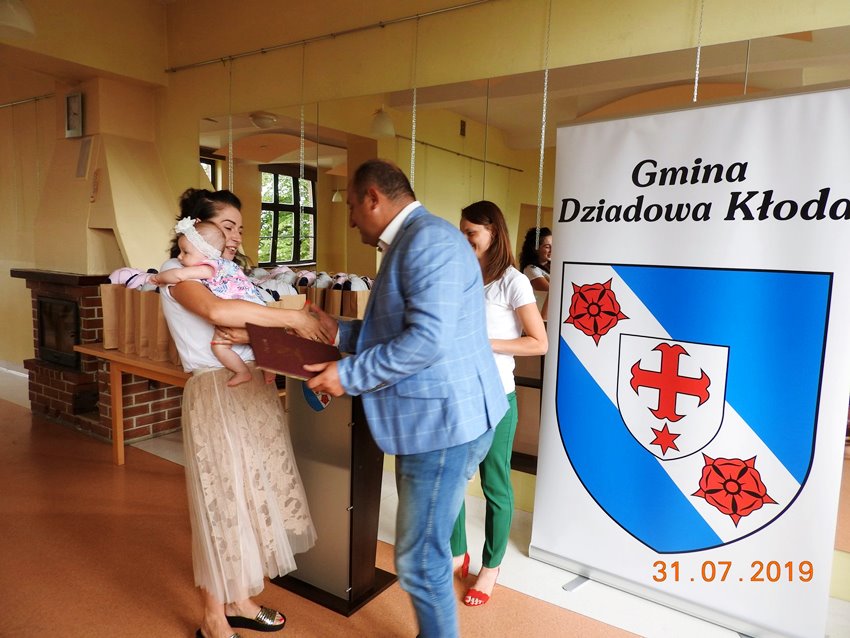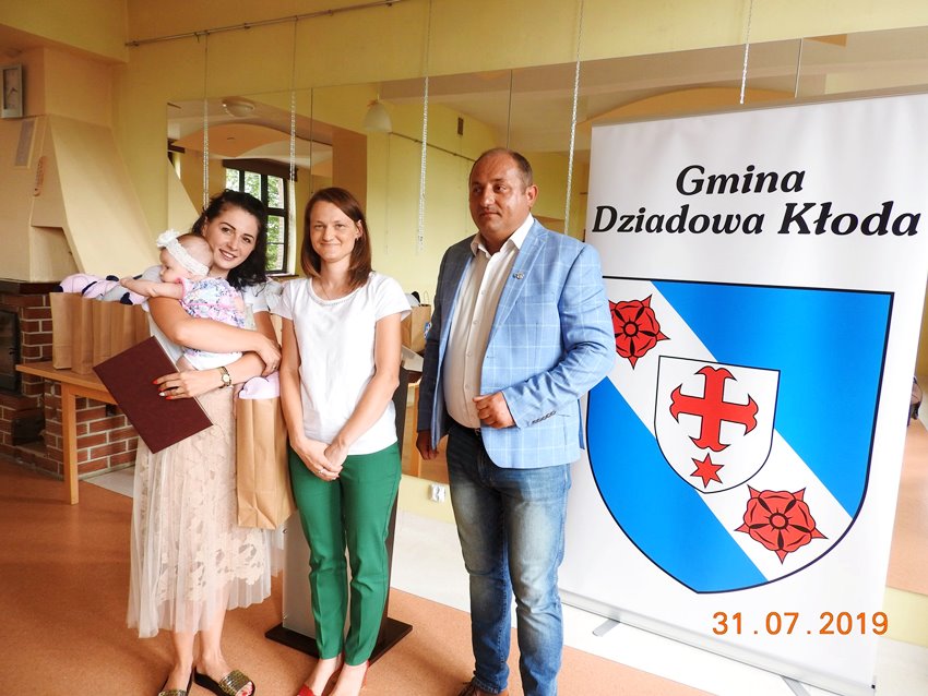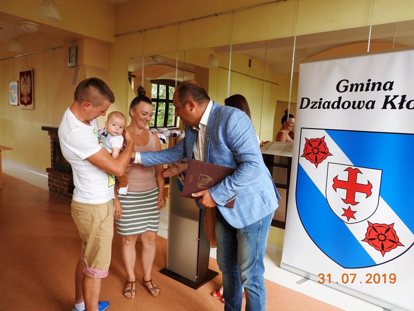 W Gminnym Ośrodku Kultury Dziadowa Kłoda przewodnicząca Rady Gminy Agnieszka Bębenek oraz wójt gminy Robert Fryt przywitali po raz drugi w tym roku nowo narodzonych mieszkańców Gminy Dziadowa Kłoda. W drugim kwartale bieżącego roku w gminie urodziło się 18 dzieci (11 dziewczynek i 7 chłopców), a zatem łącznie w 2019 roku przybyło w gminie Dziadowa Kłoda 29 pociech.