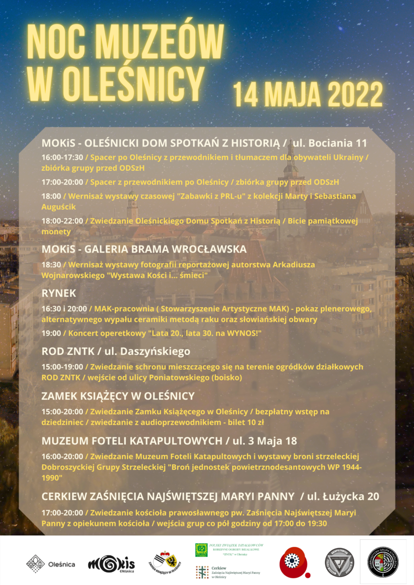 Miejski Ośrodek Kultury i Sztuki w Oleśnicy wraz z Urzędem Miasta Oleśnicy i partnerami zapraszają na Noc Muzeów.