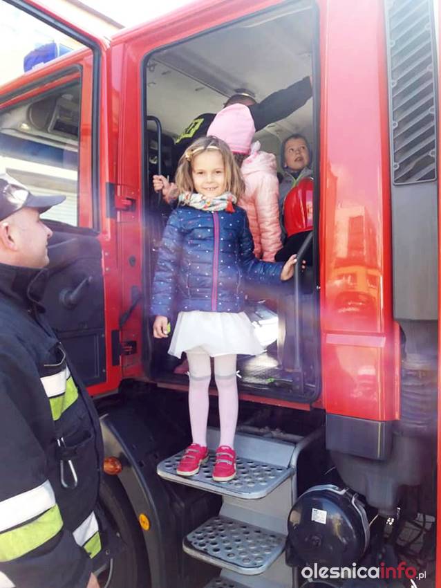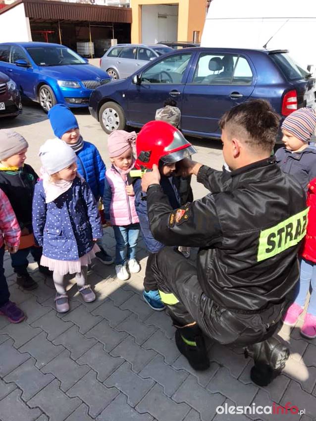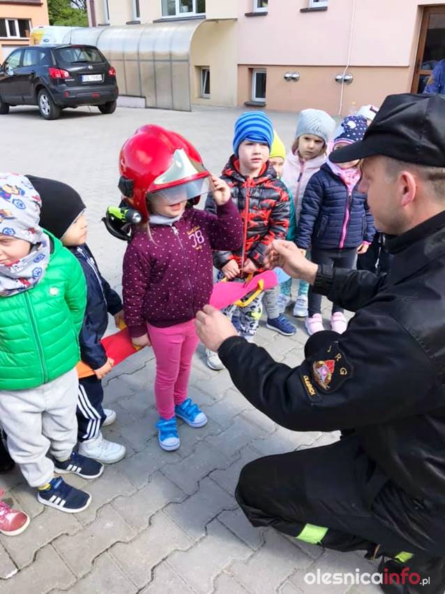 Trzy grupy Żabki, Pszczółki i Biedronki z Przedszkola Zielona Żabka odwiedziły dziś siedzibę Państwowej Straży Pożarnej w Oleśnicy. Dzieci miały okazję z bliska przyjrzeć się wozom gaśniczym, strażacki sprzęt, dyspozytorkę. Mogły zobaczyć jak strażacy zjeźdżają po rurze a na deser zostały poczęstowane strażackimi cukierkami.
