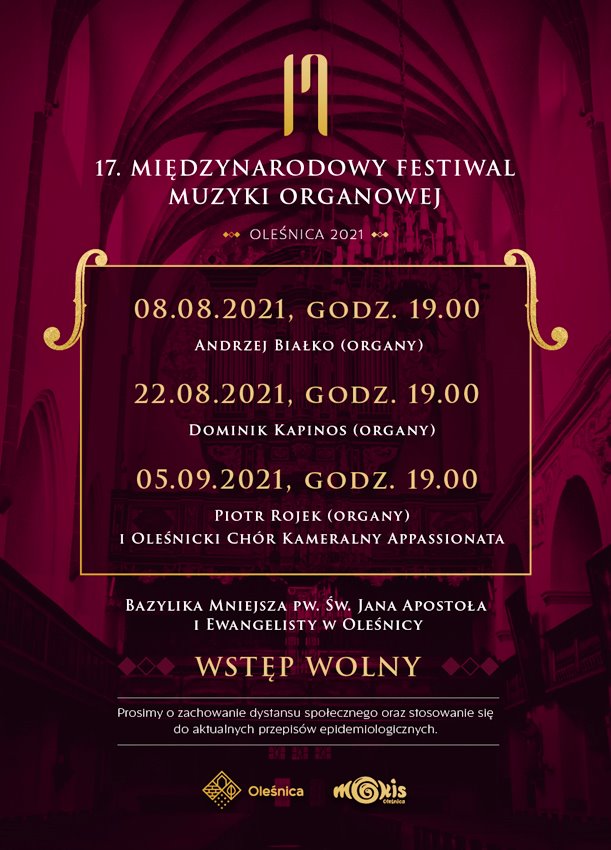 Miejski Ośrodek Kultury i Sztuki w Oleśnicy zaprasza na XVII Międzynarodowy Festiwal Muzyki Organowej.