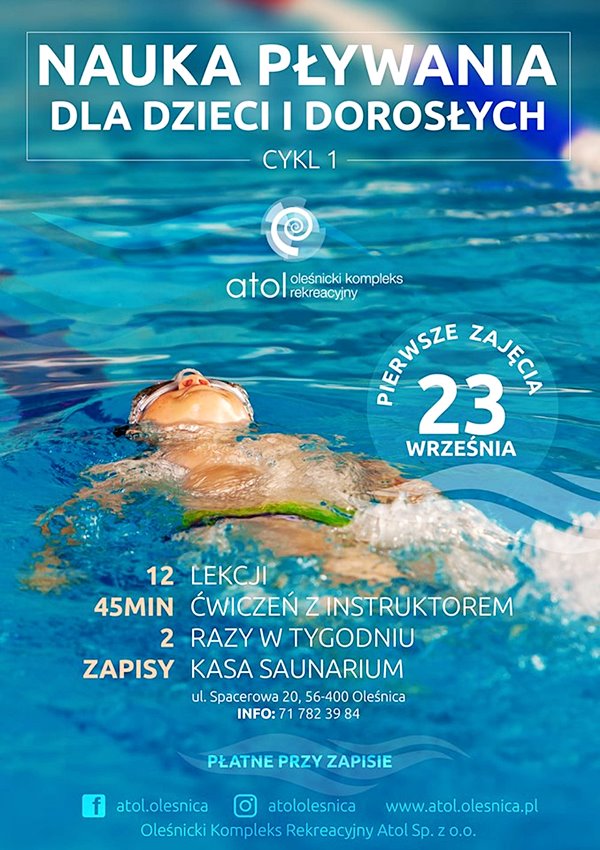 Oleśnicki Kompleks Rekreacyjny Atol rusza z pierwszym cyklem nauki pływania dla dzieci i dorosłych.