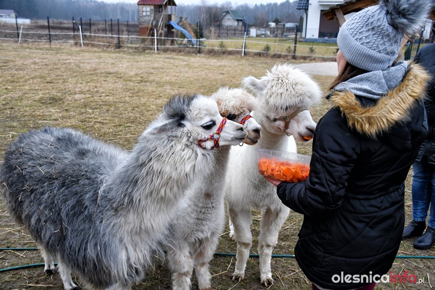 Kiedy wspólnie zaglądamy do alpakarni ich lokatorzy aż przebierają nogami na widok pani Doroty i…pokrojonej w plastry marchewki, którą wspólnie częstujemy alpaki. – Uwielbiają ten smakołyk, ale muszę dawkować im porcje, które mogą zjeść w ciągu jednego dnia – mówi nasza rozmówczyni. – Podobnie, jak inne warzywa, które otrzymują. A są to m.in. starte buraczki, czy pietruszka. Codziennie ścieram dla nich całe wiaderko. No i siano. To też rarytas dla alpak.