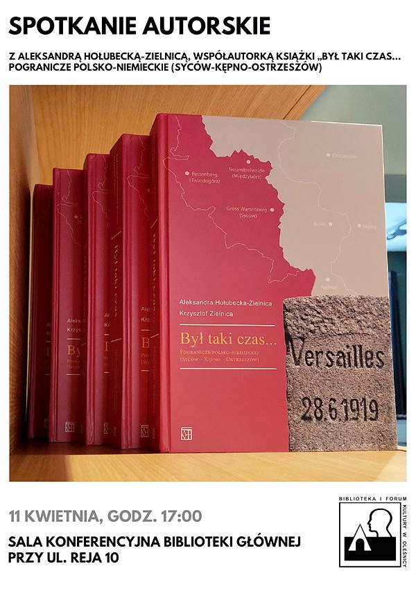 Biblioteka i Forum Kultury w Oleśnicy zaprasza 11 kwietnia na spotkanie z Aleksandrą Hołubecką-Zielnicą, współautorką książki „Był taki czas… Pogranicze polsko-niemieckie (Syców-Kępno-Ostrzeszów). Wspomnienia i relacje z lat 1918-1958”.