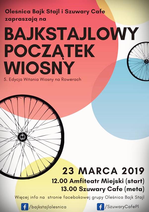 23 marca Oleśnica Bajk Stajl zaprasza na kolejny happening rowerowy i wspólne witanie wiosny.