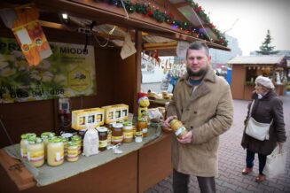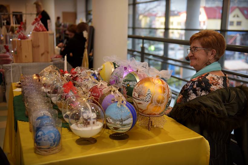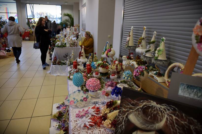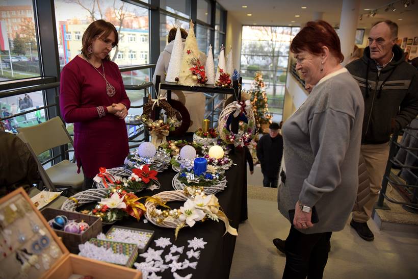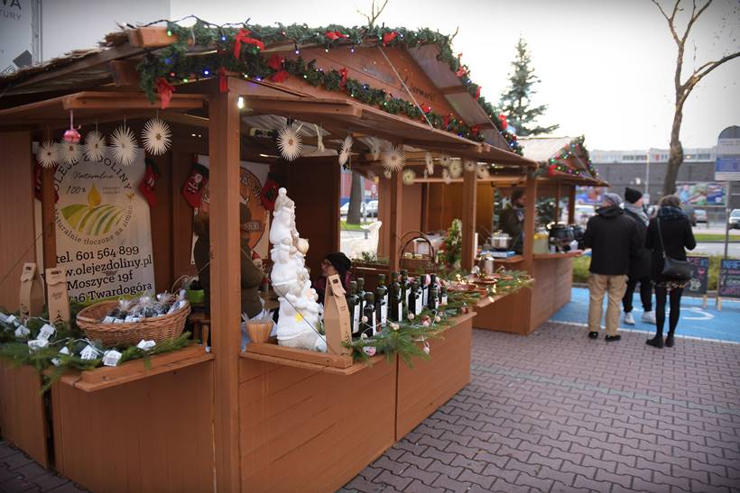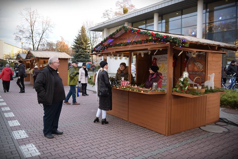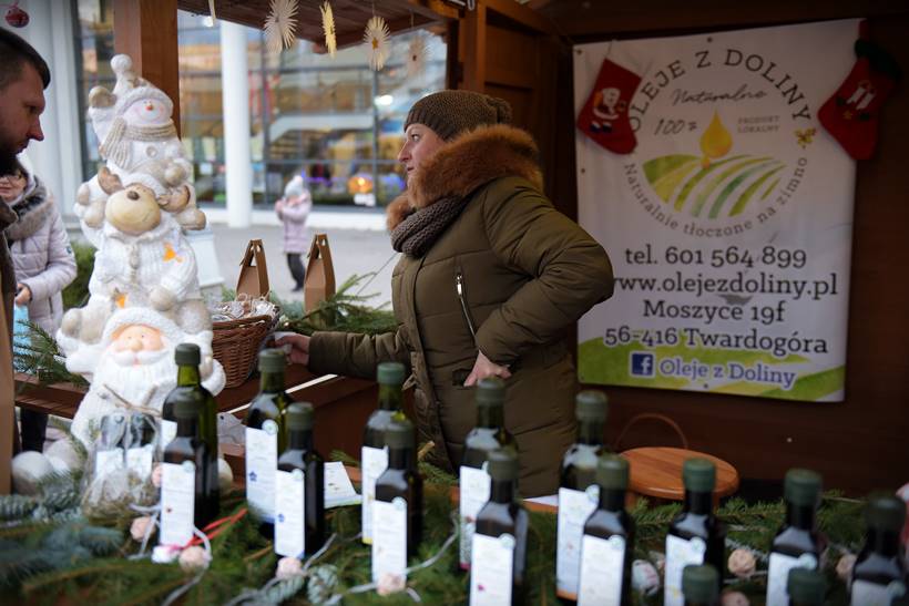 W sali widowiskowej, na dwóch kondygnacjach, rozstawili się rękodzielnicy i rzemieślnicy. Można kupić biżuterię, ozdoby świąteczne, obrazy. – Mamy aż 22 wystawców, co bardzo nas cieszy – mówi nam Sylwia Belda z Biblioteki i Forum Kultury. Zapełniły się także drewniane domki, które ustawiono w tym roku przed salą widowiskową. Można nich kupić sery, wędliny, miody, także ozdoby świąteczne. Dzisiaj na świątecznej scenie prezentowały się m.in. Karolinki z Bystrego, Oleśniczanie Młodzi Duchem, chór Canorus.