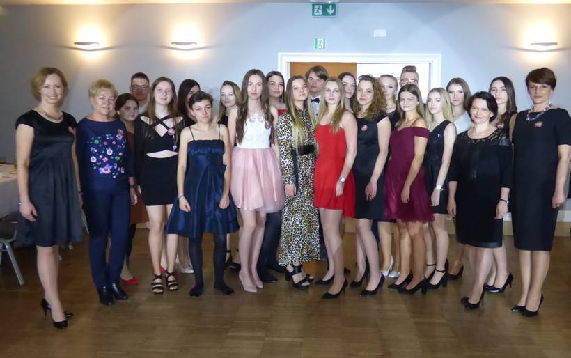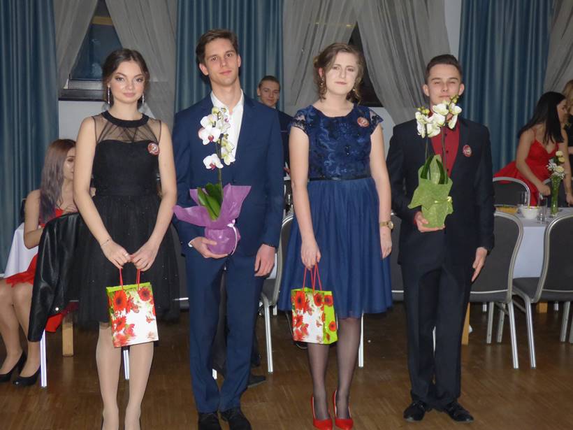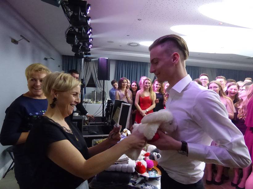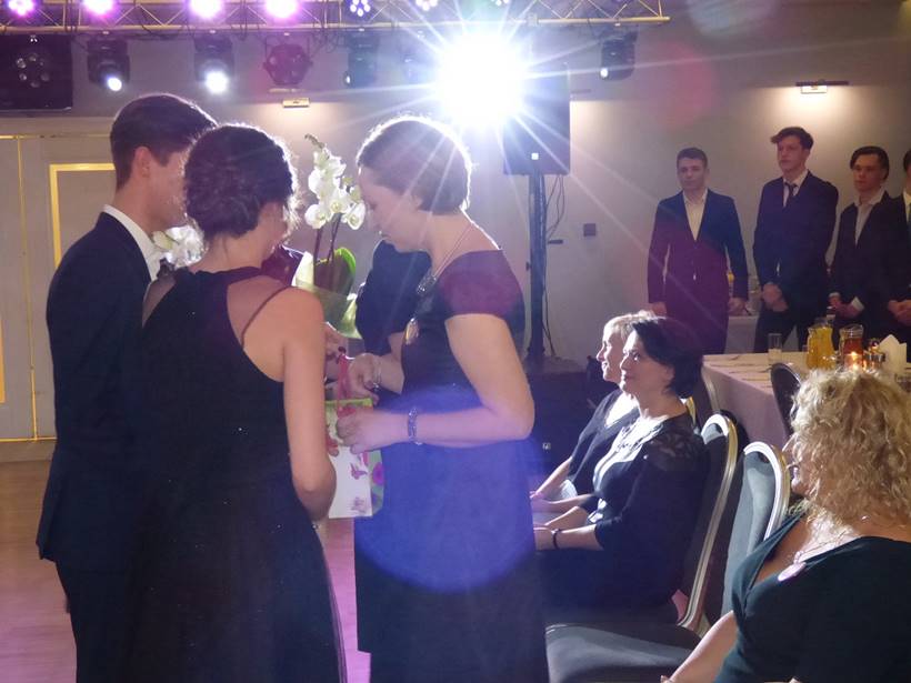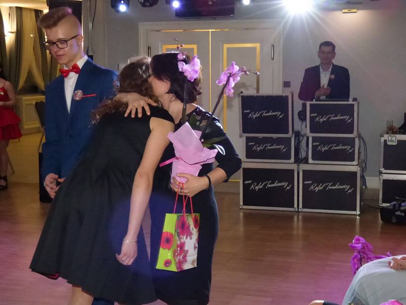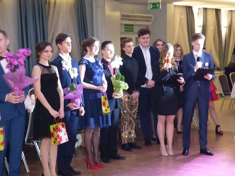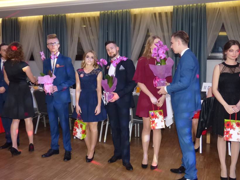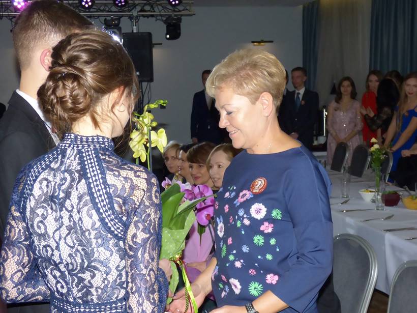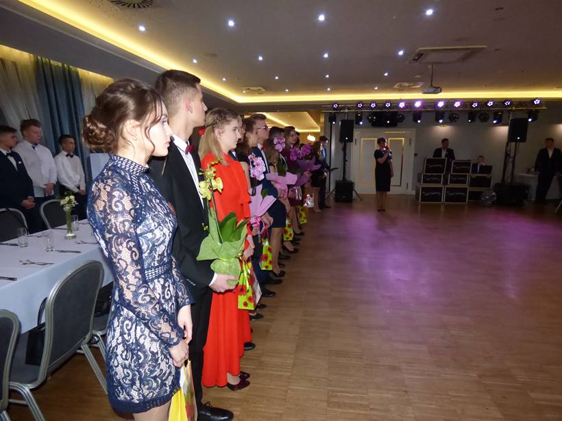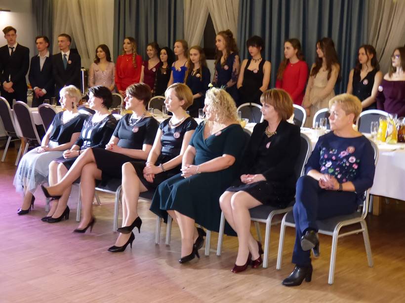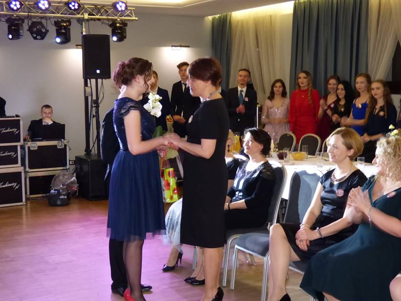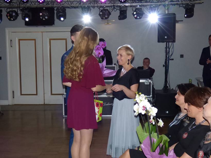 Uczniowie podziękowali kwiatami dyrektor Marzenie Helińskiej i wicedyrektor Katarzynie Niesobskiej-Łacny, swoim wychowawczyniom: Justynie Krupce, Ewie Lubońskiej, Izabeli Przyłęckiej i Katarzynie Śliwińskiej oraz organizatorce tej wspaniałej zabawy Anetcie Adamczuk.