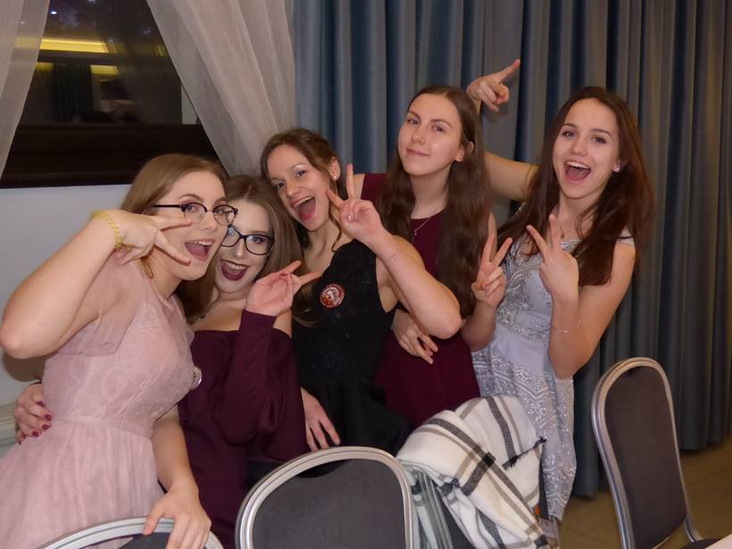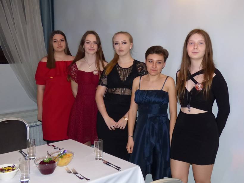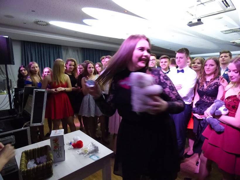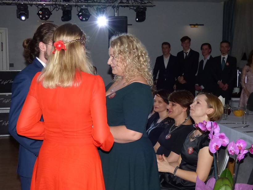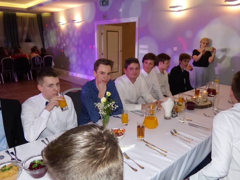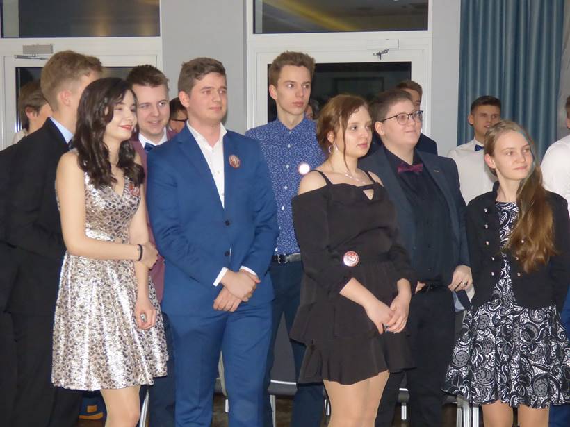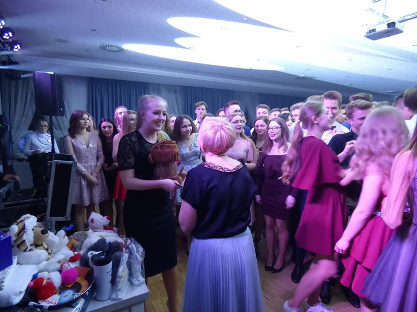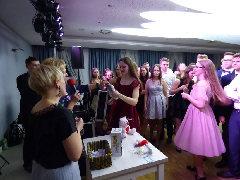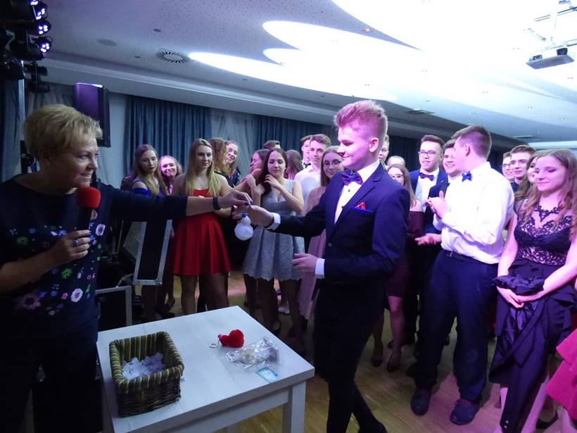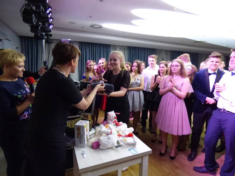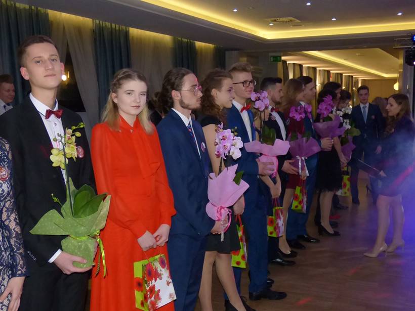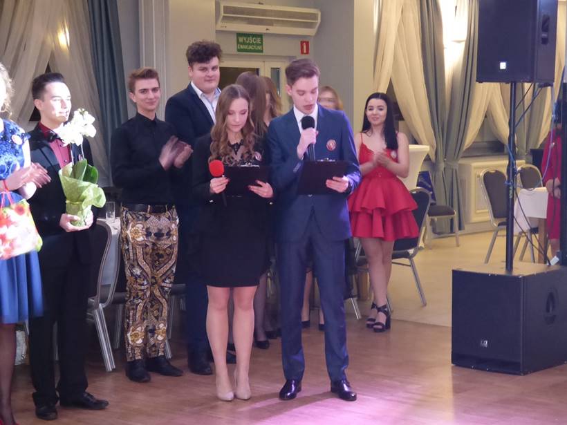 Uczniowie podziękowali kwiatami dyrektor Marzenie Helińskiej i wicedyrektor Katarzynie Niesobskiej-Łacny, swoim wychowawczyniom: Justynie Krupce, Ewie Lubońskiej, Izabeli Przyłęckiej i Katarzynie Śliwińskiej oraz organizatorce tej wspaniałej zabawy Anetcie Adamczuk.