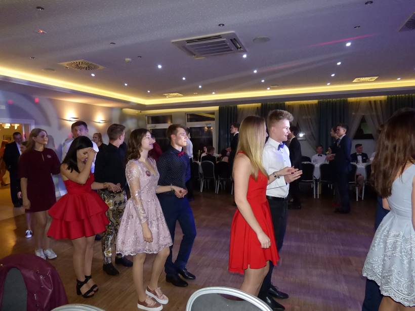 Młodzież rozpoczęła połowinki tańcem belgijskim. Nie zabrakło również zabaw i loterii. Na półmetku swojej edukacji w I LO uczniowie, wraz z dyrekcją i nauczycielami, postanowili trochę odetchnąć od nauki i codziennych szkolnych spraw. Była to świetna okazja do radości, śmiechu i młodzieńczych rozmów. Zabawa trwała aż do północy.
