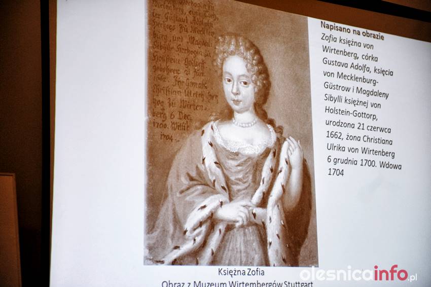Zofia była żoną księcia Christiana Ulryka. – Nie wybudował on pałacu dla księżnej Zofii, lecz w 1700-1702 r. zaczyna przekształcać zamek oleśnicki w pałac – przypomina Marek Nienałtowski, pasjonat historii Oleśnicy. Całe pierwsze piętro południowego skrzydła przeznaczył na komnaty księżnej. Odnowiono je w stylu barokowym. Sufity sal ozdobiono dekoracją stiukową przedstawiającą sceny mitologiczne. W największej, zwanej komnatą Zofii, umieszczono także kominek, zwieńczony medalionem ją przedstawiającym. – Być może wtedy dopiero księżna Zofia sprowadziła się do zamku oleśnickiego – przypuszcza pan Marek, podkreślając, że księżna tylko dwa lata korzystała z tych komnat. Po śmierci męża w 1704 r. jej siedzibą wdowią stał się pałacyk w Zbytowej, gdzie mieszkała do śmierci w 1738 r.