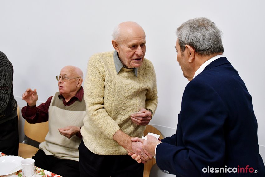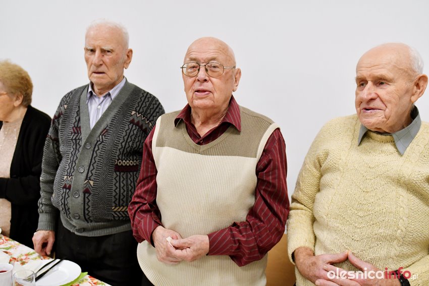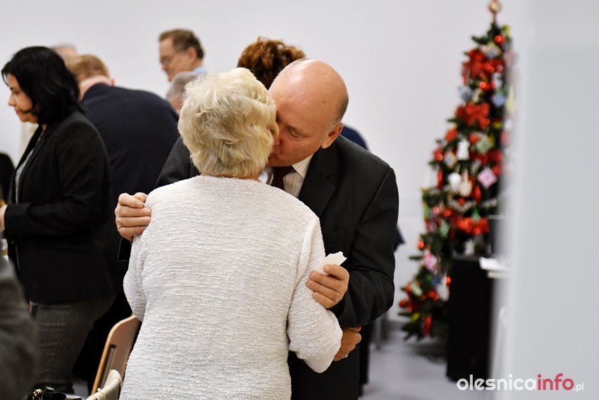 Na spotkanie zaproszono seniorów, którzy na co dzień spotykają się w Klubie Seniora. Dzisiaj była okazja do podzielenia się opłatkiem, składania sobie życzeń i wspólnego kolędowania. Na stole pojawiły się smaczne wigilijne dania przygotowane przez kuchnię CUS, a wraz z seniorami zasiedli do nich przedstawiciele władz miasta z burmistrzem Janem Bronsiem, wiceburmistrz Edytą Małys-Niczypor oraz przewodniczącym Rady Miasta Oleśnicy Aleksandrem Chrzanowskim.