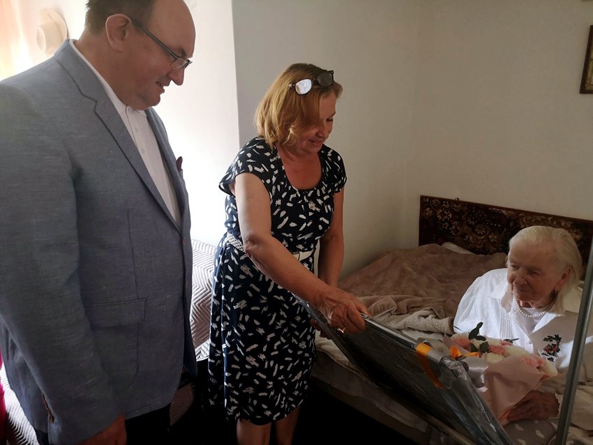 Dziś burmistrz Jan Bronś wraz z zastępcą Edytą Małys-Niczypor odwiedzili państwa Katarzynę i Antoniego Szponarskich, obchodzących 100 urodziny.