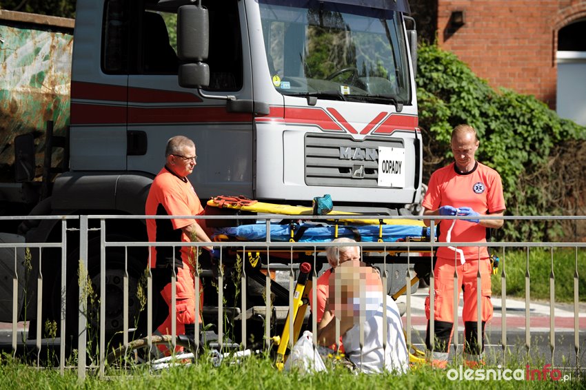 Samochód przewożący odpady potrącił kobietę jadącą na rowerze. Na miejscu są już służby ratunkowe, w tym pogotowie, które udziela pomocy poszkodowanej kobiecie. Ulica Wojska Polskiego na wysokości starej poczty jest obecnie nieprzejezdna. Teren zabezpiecza policja, która zbada, jak doszło do zdarzenia.