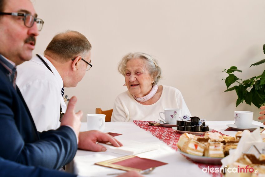 Z życzeniami dotarli do jubilatki dyrektor Powiatowego Zespołu Szpitali w Oleśnicy Krzysztof Wywrot oraz burmistrz Sycowa Dariusz Maniak. Gromkie „Dwieście lat” śpiewały pani Marii także pielęgniarki i lekarze oddziału, na którym jubilatka przebywa od sześciu lat.