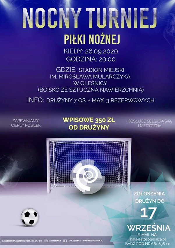 Zapisy przyjmowane są do 17 września poprzez wysłanie wiadomości na e-mail hala@atol.olesnica.pl, bądź pod numerem telefonu 661 838 111.