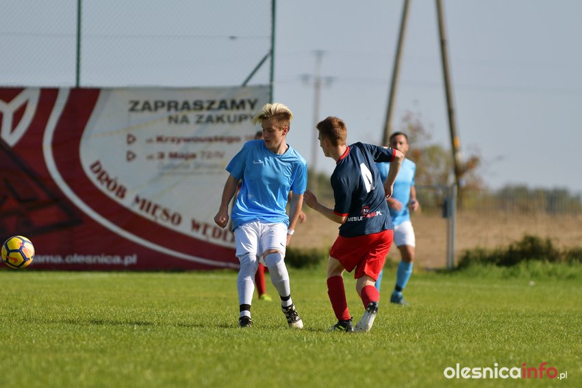 Mecz lepiej rozpoczęli goście, którzy pierwsi objęli prowadzenie. Na odpowiedź kibice zgromadzeni w Krzeczynie nie czekali jednak długo. Minutę później do wyrównania doprowadził Dawid Szramski. Pierwszą połowę Błękitni kończyli wygrywając 3:1, bo do bramki rywali trafiali jeszcze Tomasz Fuchs i Mateusz Kiełkiewicz.