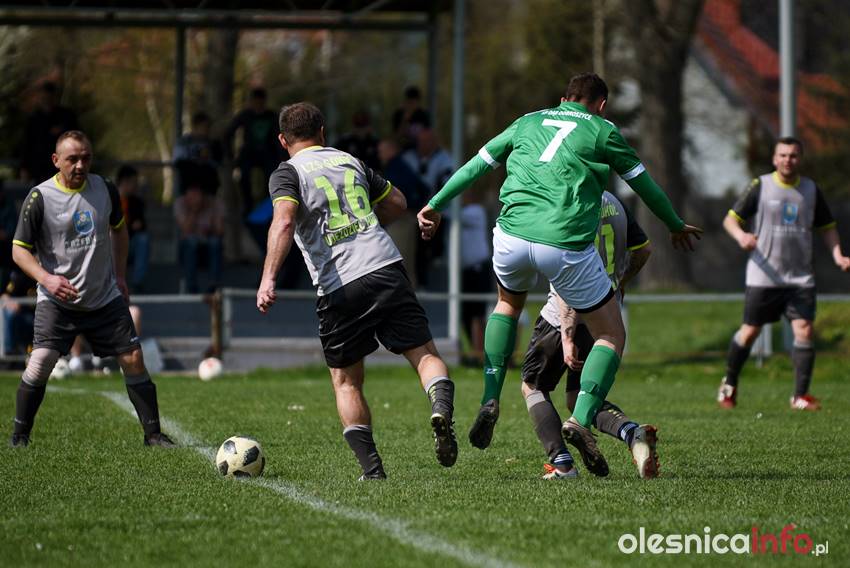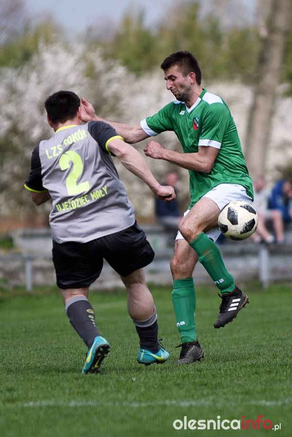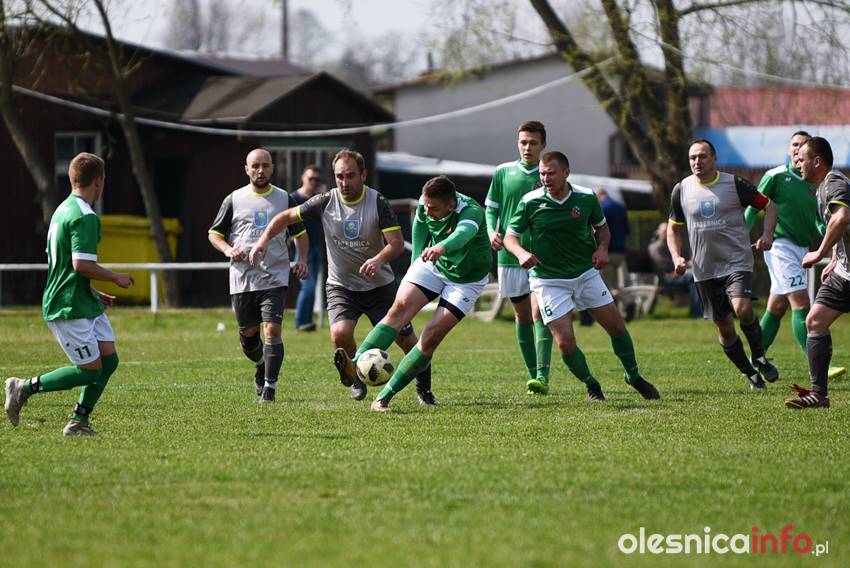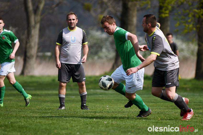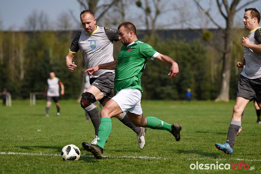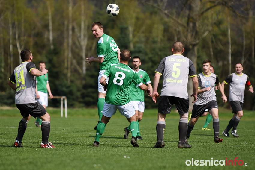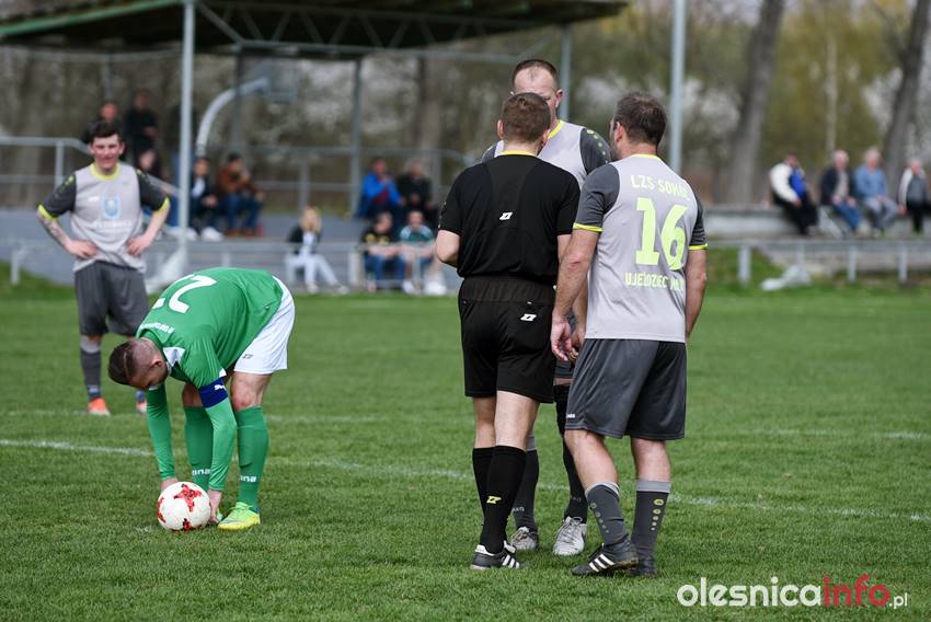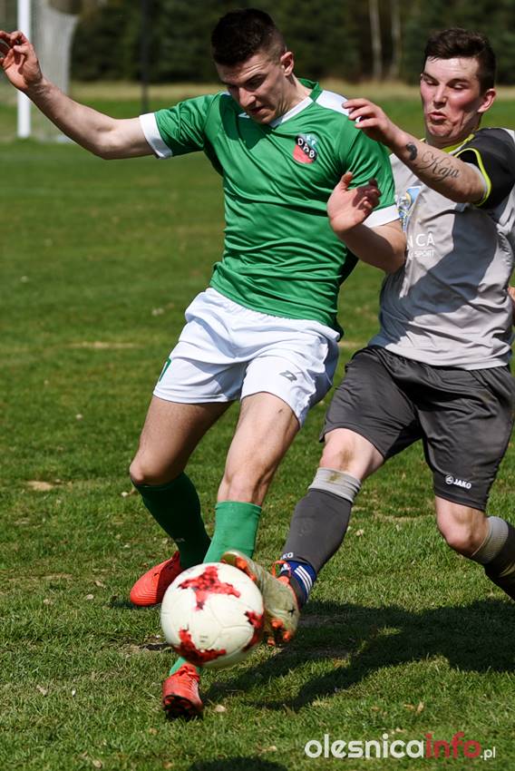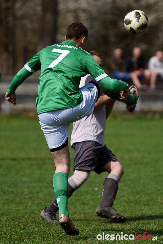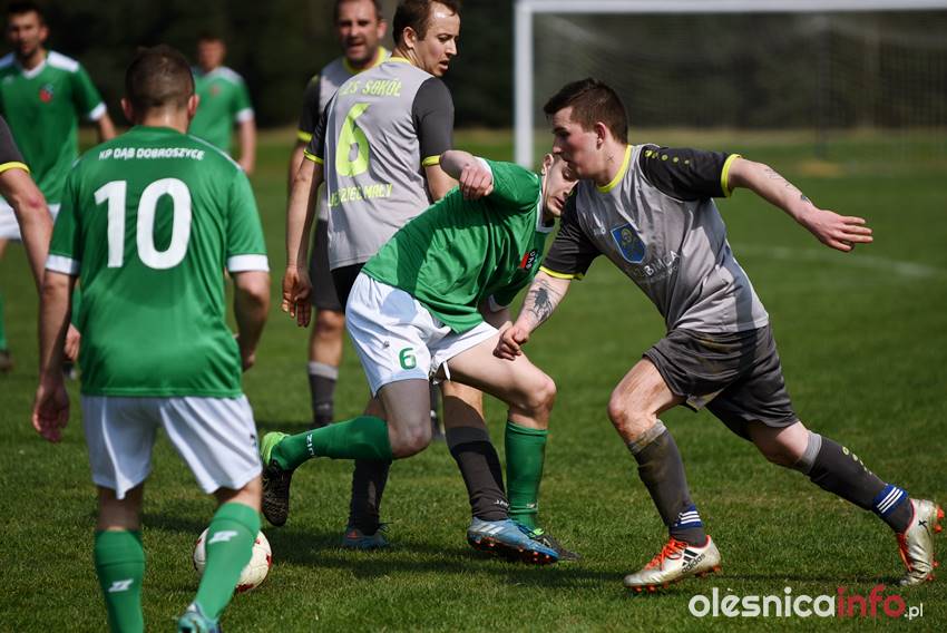 Pierwszy gwizdek na stadionie w Dobroszycach rozbrzmiał o godzinie 11, a już po 20 minutach miejscowy Dąb prowadził z Sokołem Ujeździec Mały 2:0. Do bramki rywali trafiali kolejno Dawid Konica i Mateusz Łacny. Szansę na podwyższenie wyniku miał też  kapitan gospodarzy Wojciech Koksztys, ale fatalnie przestrzelił jedenastkę.
