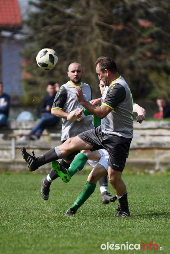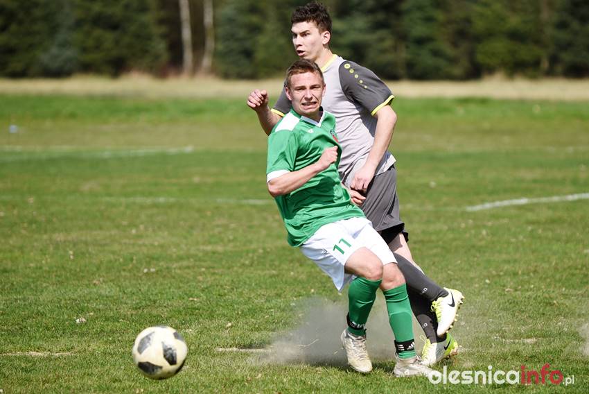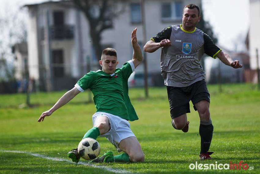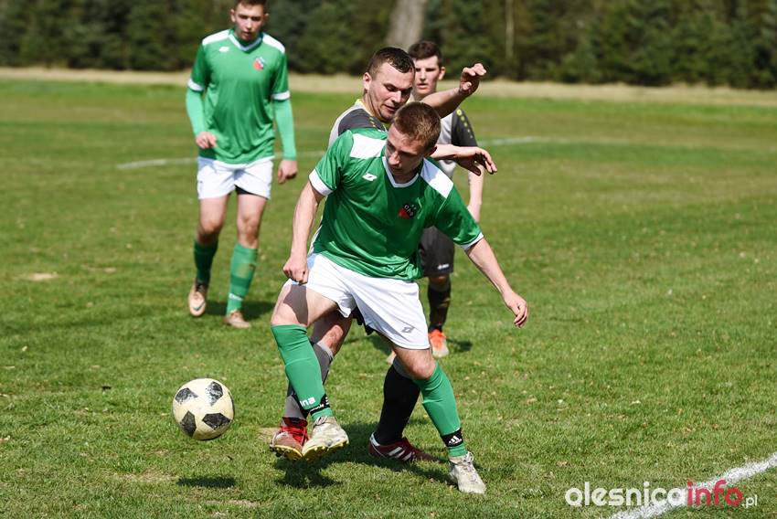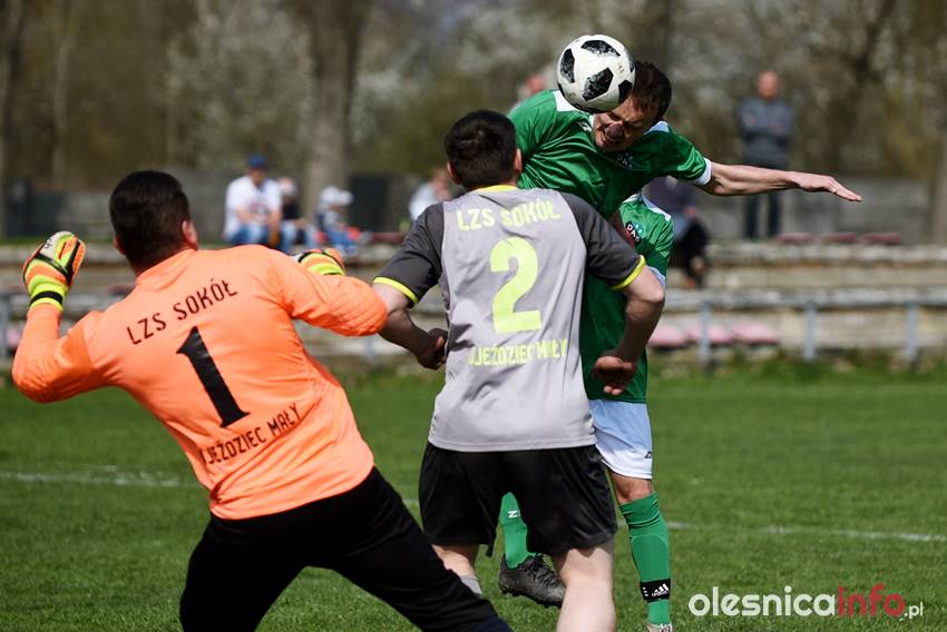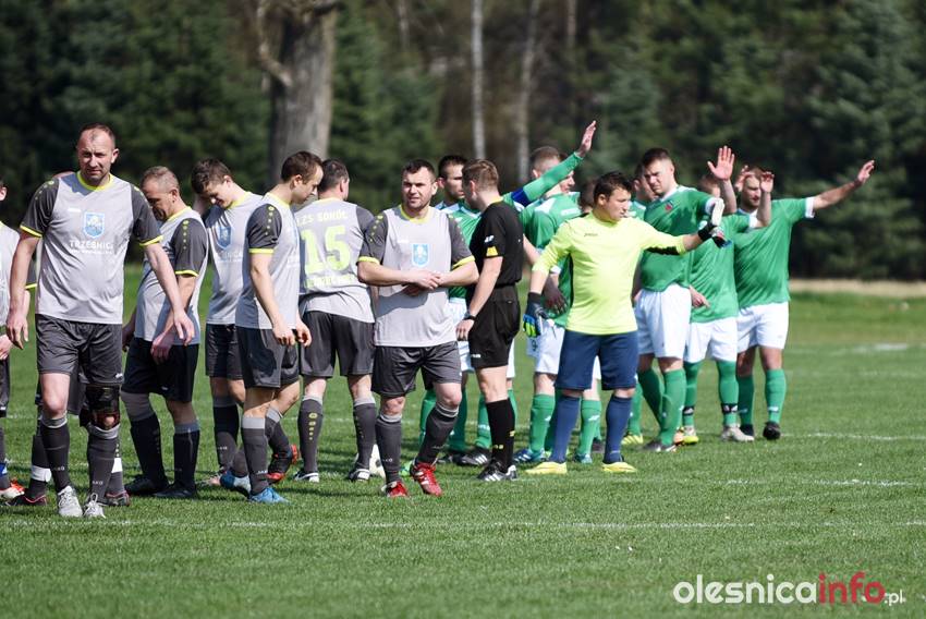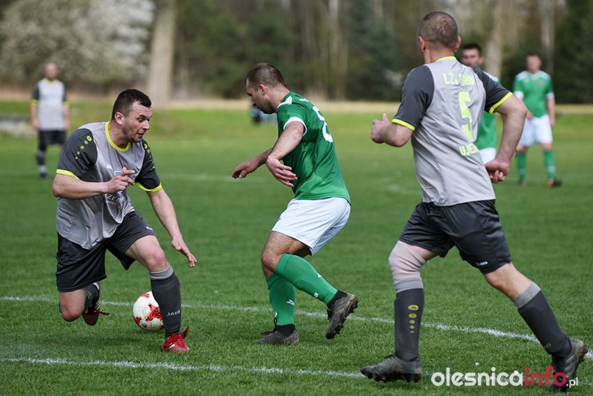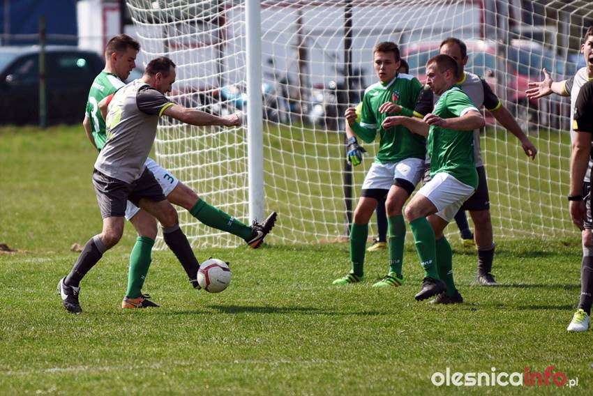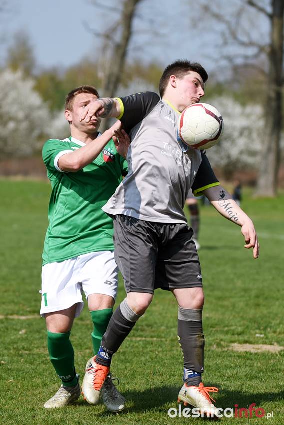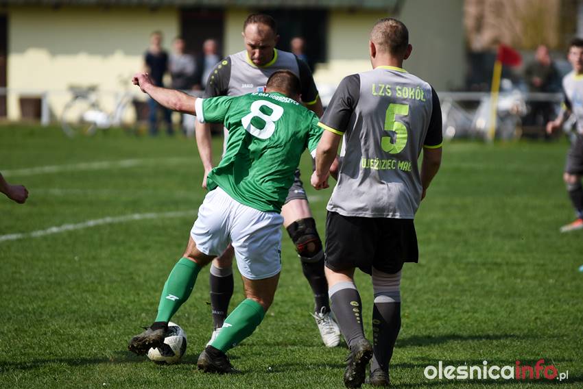 Pierwszy gwizdek na stadionie w Dobroszycach rozbrzmiał o godzinie 11, a już po 20 minutach miejscowy Dąb prowadził z Sokołem Ujeździec Mały 2:0. Do bramki rywali trafiali kolejno Dawid Konica i Mateusz Łacny. Szansę na podwyższenie wyniku miał też  kapitan gospodarzy Wojciech Koksztys, ale fatalnie przestrzelił jedenastkę.