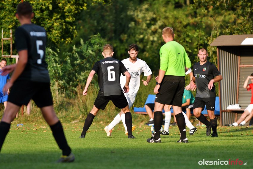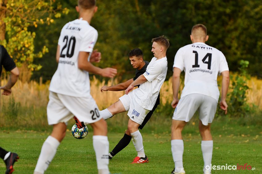 W Dobroszycach miejscowy Dąb podejmował IV ligowego Piasta Żerniki. Od początku spotkania gospodarze pressingiem próbowali zaatakować wyżej notowanego rywala. Na tak ambitną grę sił A-klasowemu zespołowi wystarczyło jedynie przez 15 minut. W 16. minucie w polu karnym Dębu faulowany był Karol Osiecki, a jedenastkę pewnie wykorzystał Mateusz Magusiak. Piast swoje prowadzenie utrzymał do końca pierwszej połowy, choć swoje szanse na wyrównanie mieli również piłkarze Jarosława Kośka.