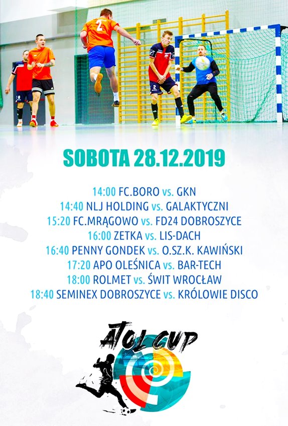 W sali sportowej Oleśnickiego Kompleksu Rekreacyjnego Atol trwa kolejna odsłona Atol Cup. Zobaczcie kto z kim i o której spotka się na piłkarskim boisku.