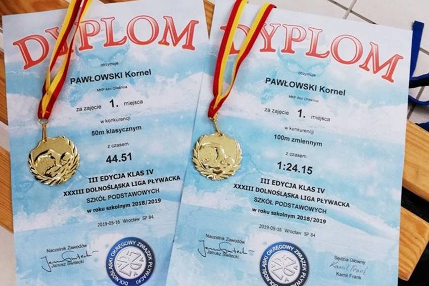 Miejski Klub Pływacki Atol Oleśnica znakomicie reprezentował Kornel Pawłowski, który w dwóch startach indywidualnych nie dał szans swoim rywalom. Oleśniczanin był najlepszy w wyścigu na 50 metrów stylem klasycznym i 100 metrów stylem zmiennym. Dodatkowym akcentem była obecność dwóch sędziów Igora Wieczorka i Daniela Kowalskiego, wychowanków oleśnickiego klubu. – Kornelowi gratulujemy i czekamy na kolejne sukcesy – informuje MKP Atol Oleśnica.