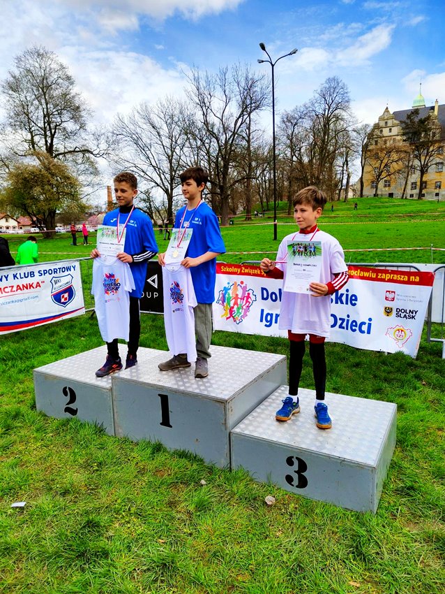 Dominik Bień po raz kolejny udowodnił, że jest wszechstronnym zawodnikiem. Po wywalczeniu brązowego medalu w short-tracku, tym razem został wicemistrzem Dolnego Śląska w Igrzyskach Młodzieży Szkolnej w biegu przełajowym na dystansie 2000 m. Błażej Kowalski w Igrzyskach Dzieci w klasach IV zajął 3.miejsce. To już drugi medal tego młodego, utalentowanego biegacza w tych zawodach.