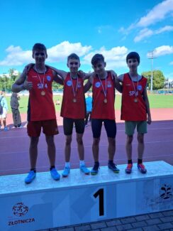 Chłopcy w tej samej kategorii wiekowej zajęli 3 miejsce w sztafecie 4 x 100 i wygrali sztafetę szwedzką zajmując w klasyfikacji generalnej 2.miejsce i tytuł wicemistrzów naszego województwa.