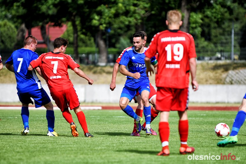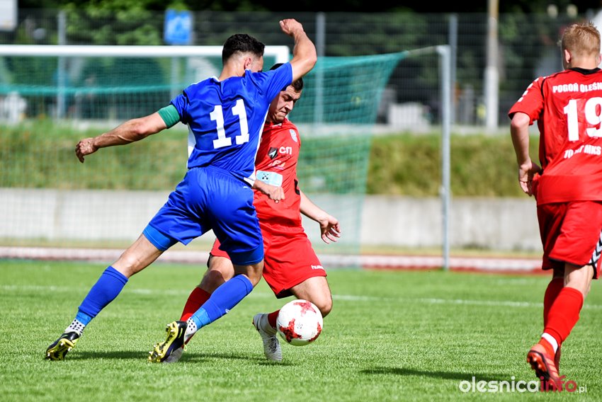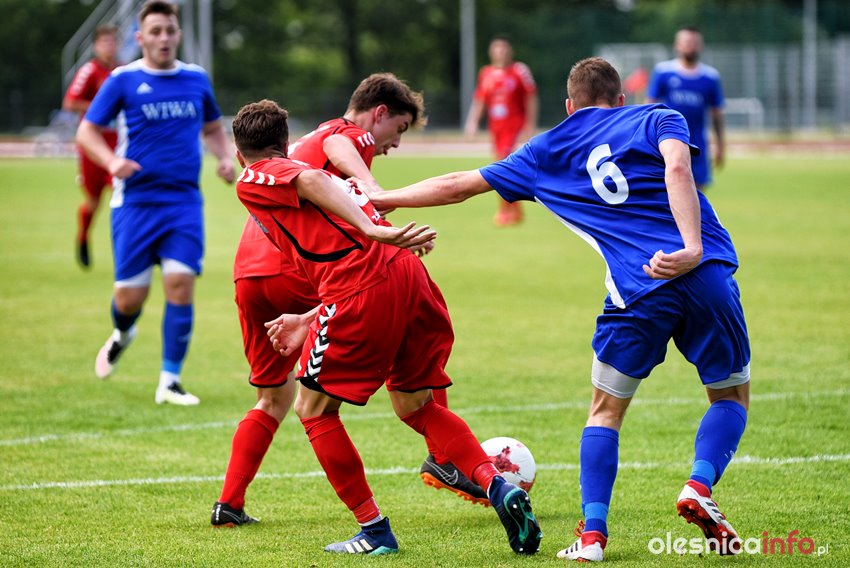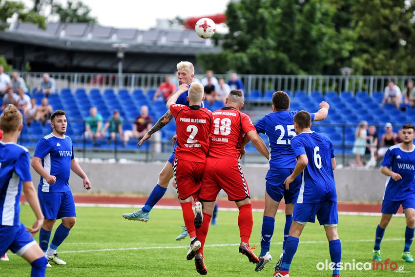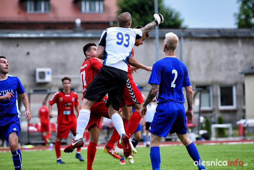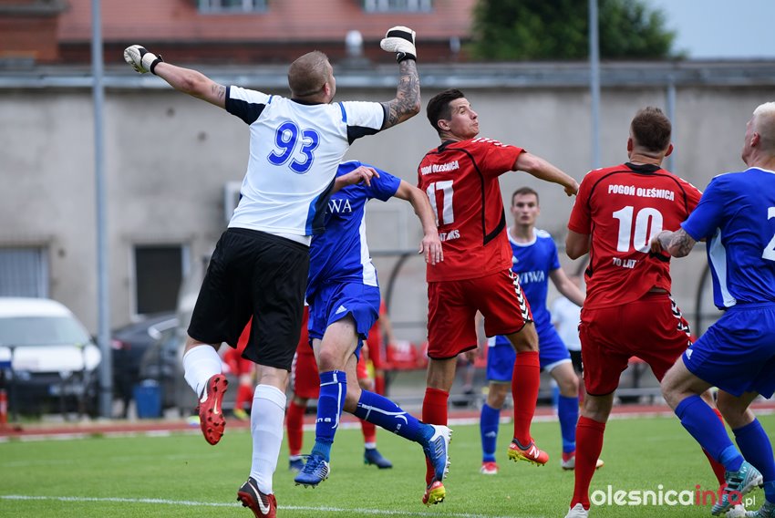 Do przerwy piłkarze Pogoni Oleśnica remisowali w derbowym pojedynku na stadionie przy Brzozowej z Wiwą Goszcz 1:1.