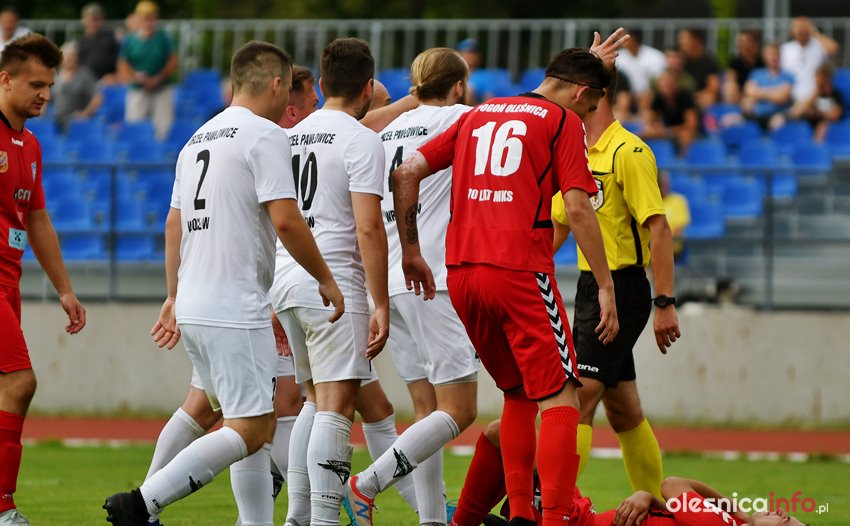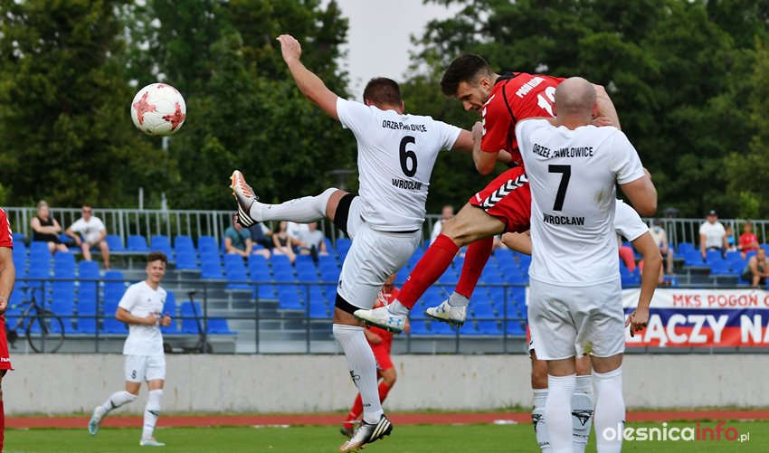 Po kwadransie gry piłkarze Pogoni Oleśnica przegrywali u siebie z Orłem Pawłowice 0:2. Kontaktową bramkę dla MKS-u zdobył z rzutu wolnego Mateusz Jendryca. W drugiej połowie piłkarze Marcina Jurasika za wszelką cenę chcieli wyrównać. Udało się to w 64. minucie Adrianowi Miodkowi. W 85 minucie w polu karnym faulowany był Kacper Korcik, a rzut karny na bramkę zamienił Filip Szczypkowski. Pogoń wygrała emocjonujące spotkanie 3:2 (2:1).