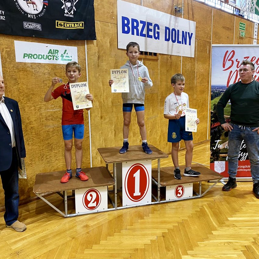 W zawodach zapaśniczych o Puchar Burmistrza Brzegu Dolnego, w poszczególnych kategoriach, kolejno na podium stanęli: