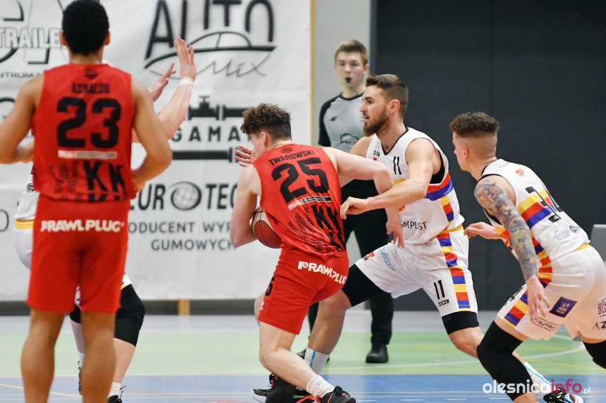 To był mecz pełen emocji, bo szala zwycięstwa co chwilę przechylała się raz na stronę koszykarzy z Oleśnicy, a raz na stronę zespołu prowadzonego przez Piotra Gliniaka. Do wyłonienia zwycięzcy potrzebna była dogrywka, bo w regulaminowym czasie gry był remis 94:94. Ostatecznie skuteczniejsi okazali się goście wygrywając 106:111.