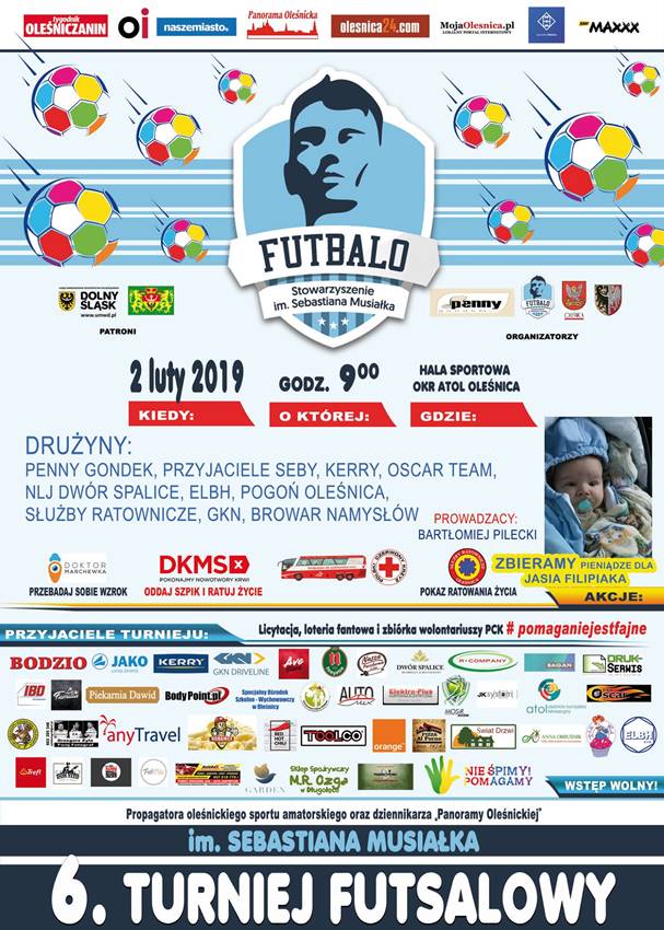 Obok emocji piłkarskich odbędzie się zbiórka krwi oraz rejestracja dawców szpiku dla Fundacji DKMS. Będzie również zbiórka pieniędzy oraz licytacja dla Jasia Filipiaka aby pomóc w leczeniu Jego małych stópek. Emocji piłkarskich na pewno nie zabraknie! O prawidłowy przebieg zawodów zadba Patryk Ogrodnik.
